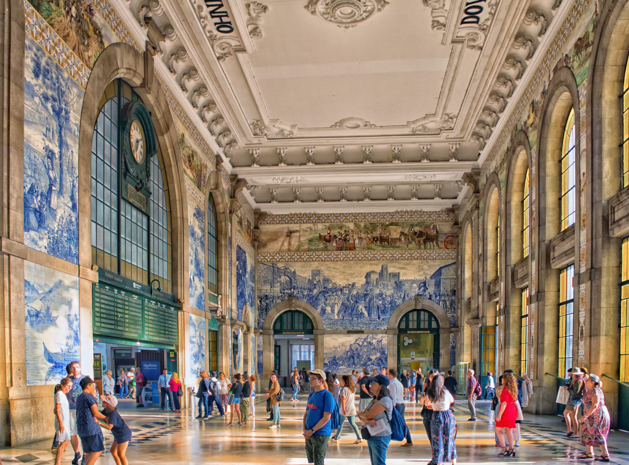 Fliesenfliesensind ein ikonischer Teil des kulturellen Erbes von Porto und, seien wir ehrlich, eine tolle Kulisse für ein Selfie. Es gibt viele Orte in der Stadt, an denen Sie Azulejo-Fliesen finden können. Unser Lieblingsort ist die Kathedrale von Porto aus dem 18. Jahrhundert, wo Sie in den Kreuzgängen atemberaubende weiße und blaue Ajulezo-Fliesen finden. Am Bahnhof São Bento finden Sie außerdem über 20.000 von Jorge Colaço hergestellte Ajulezo-Fliesen. Seine Fliesen bedecken eine Fläche von über 500 Quadratmetern im Inneren des Bahnhofs und stellen Momente der portugiesischen Geschichte wie die Entdeckungen dar.