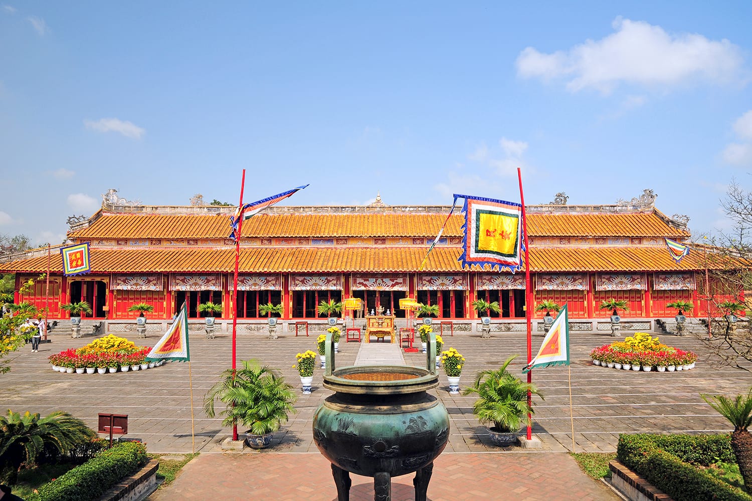 Es gibt keinen anderen Weg, einen Besuch in Hue zu beginnen, als mit seinem wichtigsten Wahrzeichen, der Zitadelle von Đại Nội. Diese riesige Zitadelle, die die moderne Stadt Hue in den Schatten stellt, war der Ort, von dem aus die Kaiser der Nguyen-Dynastie von 1802 bis 1945 regierten. Da es sich um die Hauptstadt des Vietnamesischen Reiches handelt, können Sie sich vorstellen, dass sich hinter den Mauern der Kaiserstadt einige ziemlich bedeutende Wahrzeichen befinden.