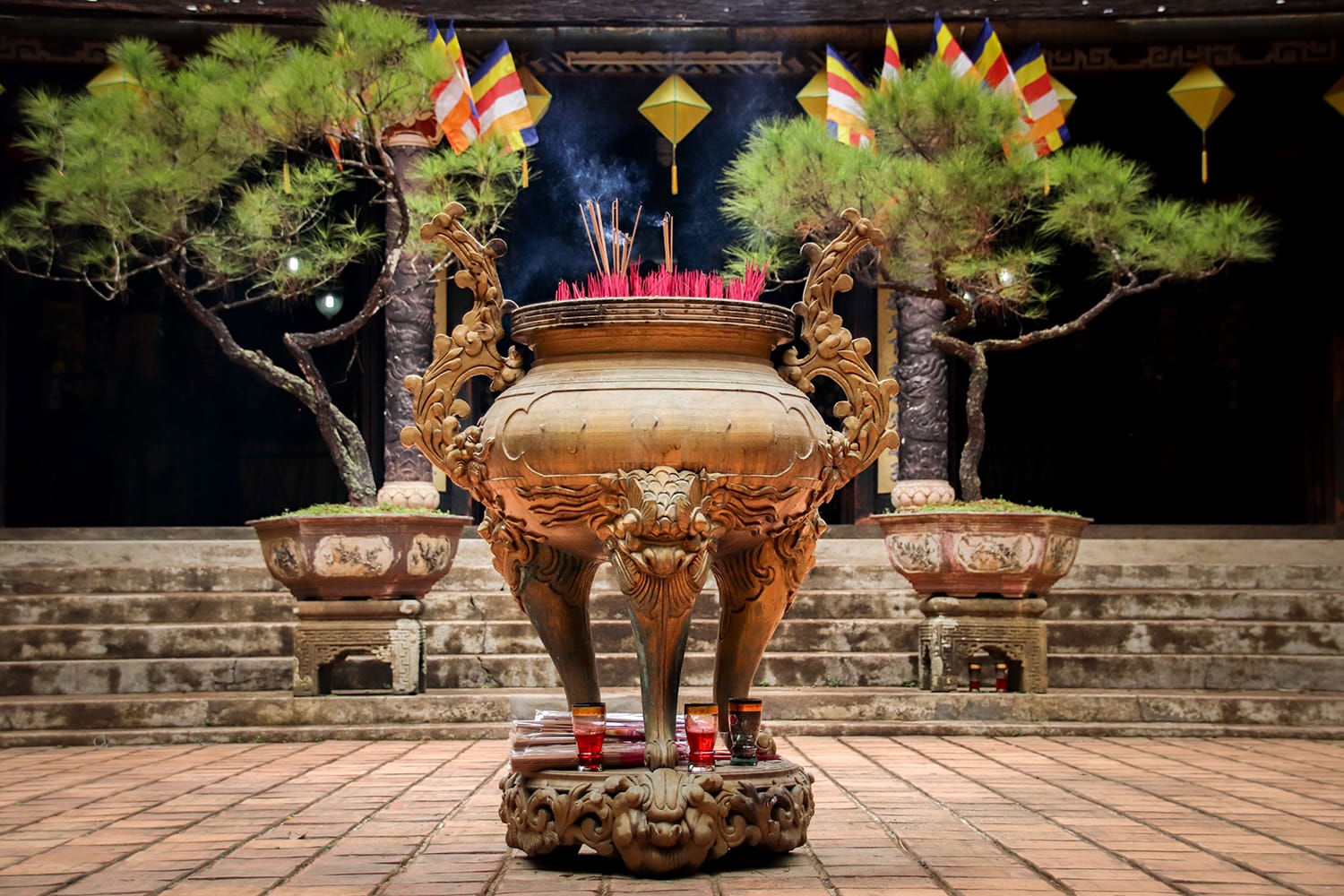 Dann ist da noch der Huyen-Tran-Prinzessin-Tempel, ein herrlich malerischer Tempelkomplex. Hier gibt es ein Kloster, mehrere Schreine und Obstgärten und es gibt viel zu sehen. Aber die Hauptattraktion ist natürlich der lebendige Tempel von Huyen Tran, der am Ende einer langen Treppe thront und auf beiden Seiten von Drachen gesäumt ist.