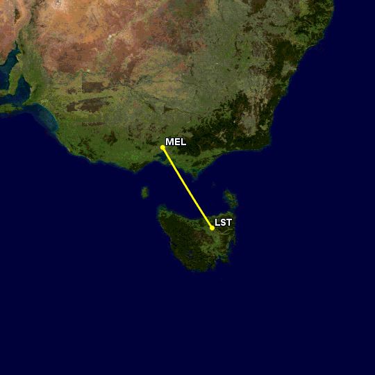 Im Dezember 2024 bietet Qantaslink 125 geplante Dienstleistungen und 17.125 Plätze an. Die Route zwischen Mel und LST ist ein kurzer Hopfen mit einer Entfernung von 476 Kilometern.