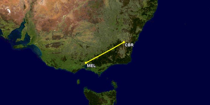 Die Canberra (CBR) nach Melbourne (Mel) Route