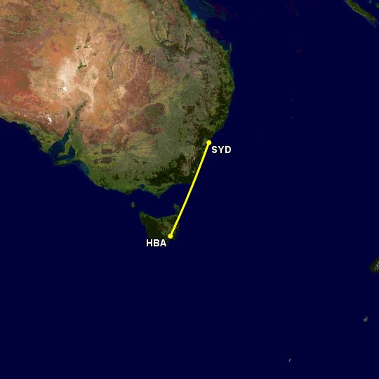 Die Sydney (Syd) nach Hobart (HBA) Route