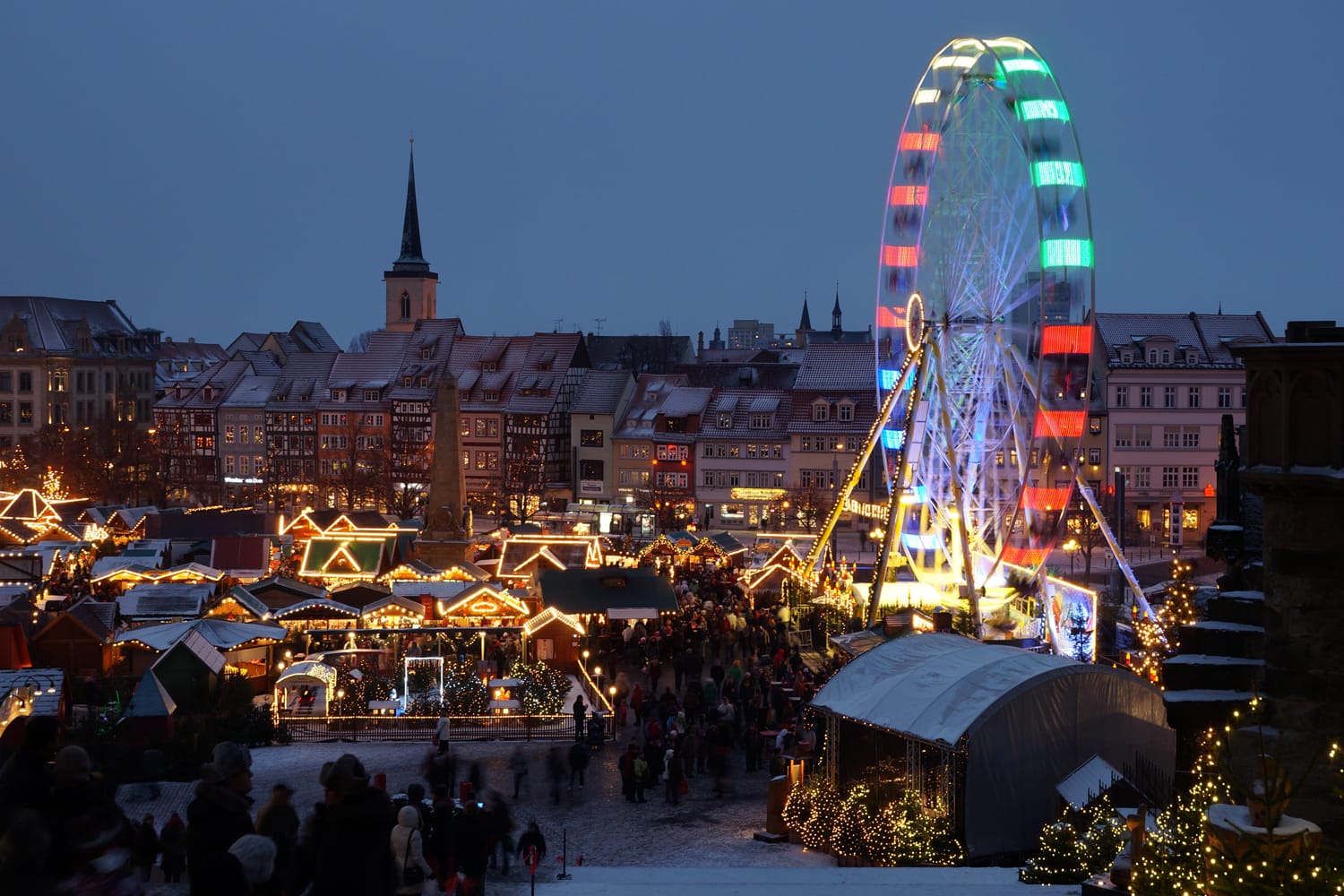 Der beste Ausgangspunkt für die Erfurter Weihnachtsmärkte ist der Domplatz, mitten im mittelalterlichen Stadtzentrum. Hier, am Erfurter Dom und St. Severi, befindet sich der Hauptmarkt der Stadt, dessen Stände von einem mächtigen, 25 Meter hohen Weihnachtsbaum in den Schatten gestellt werden. Auf dem Platz befindet sich auch ein fester Bestandteil deutscher Weihnachtsmärkte, eine Weihnachtspyramide, die in Erfurt über 12 Meter spezielle, handgefertigte Holzarbeiten und fünf spezielle Themenebenen verfügt.