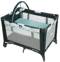 Der Graco Pack ’n Play On The Go Playard ist eines der besten Reisebetten für Neugeborene. Der abnehmbare Stubenwagen in voller Größe ist für Babys mit einem Gewicht von bis zu 7,8 kg geeignet und sorgt überall und jederzeit für einen angenehmen Schlaf. Der geräumige Laufstall schützt Ihr Kind und die Netzseiten sorgen für Belüftung und Sicht. Für die Unterhaltung Ihres Kindes ist sogar eine Spielzeugstange mit Stofftieren im Lieferumfang enthalten. Der Rahmen ist mehr als robust genug, um den Belastungen auf Reisen standzuhalten. Es lässt sich kompakt zusammenfalten, wobei die Füße und Räder nach innen geklappt werden, um es schlanker zu machen. Die mitgelieferte Tragetasche erleichtert den Transport und ist mit einem Gewicht von nur 23 Pfund recht leicht. Sorgen Sie mit dem Graco Pack ’n Play On The Go Playard dafür, dass sich Ihr Kind wohlfühlt und unterhalten wird, egal wohin Sie gehen.