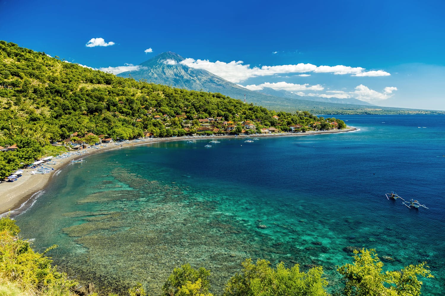 Unterwegs können Sie an mehreren wunderschönen Aussichtspunkten und Stränden anhalten, die größtenteils frei von Touristen sind und Ihnen ein intensives balinesisches Gefühl vermitteln. Amed Beach selbst ist weniger überfüllt als die Westseite der Insel, verfügt über wunderschönen schwarzen Sand und bietet einige fantastische Möglichkeiten zum Schnorcheln.