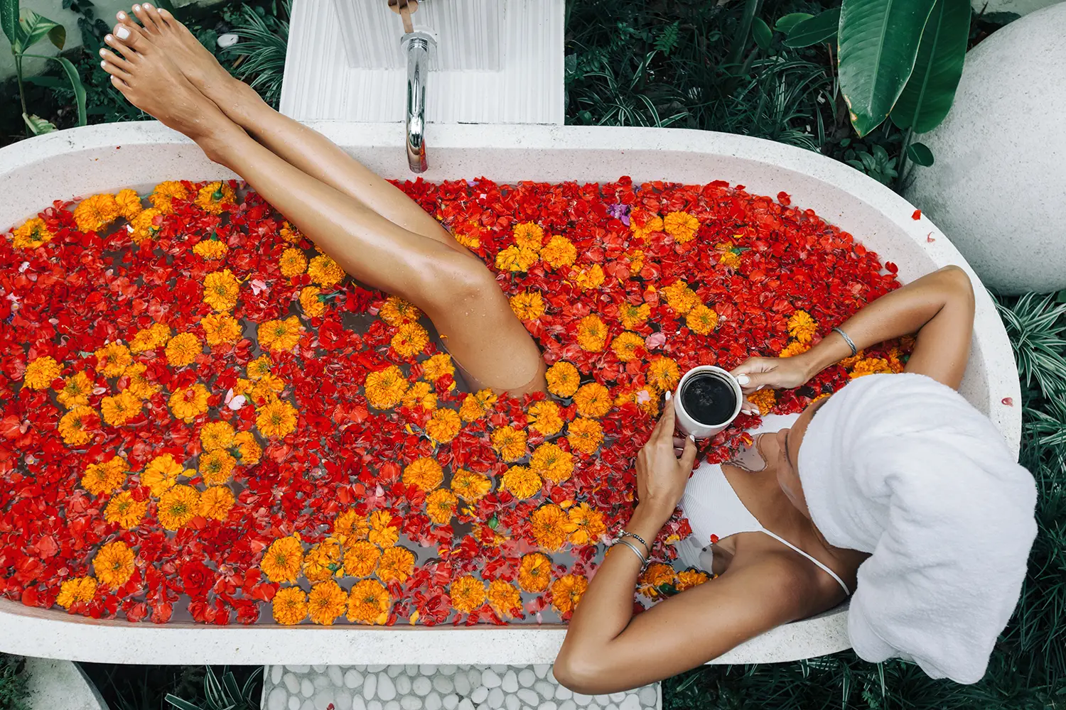 Durch die sozialen Medien werden Balis Blumenbäder immer beliebter. In Ubud gibt es mehrere wunderschöne Spas, in denen Sie diese entspannende balinesische Tradition genießen können, die auf die buddhistischen Heilrituale der Insel zurückgeht. Die Blumen und Kräuter im Wasser dienen nicht nur dem süßen Geruch und der Ästhetik; Sie sollen helfen, den Körper zu heilen und Karma aus früheren Leben zu reinigen.