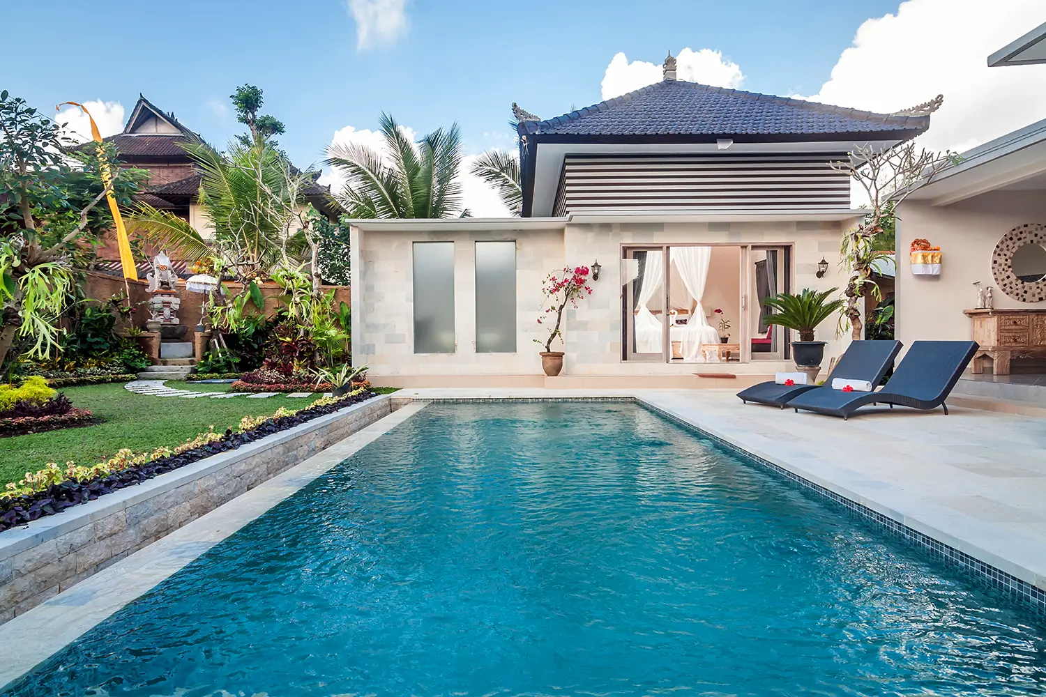 Warum beginnen Sie Ihren ersten Urlaubstag nach der langen Reisezeit auf Bali nicht mit einer Massage und einem Blumenbad?