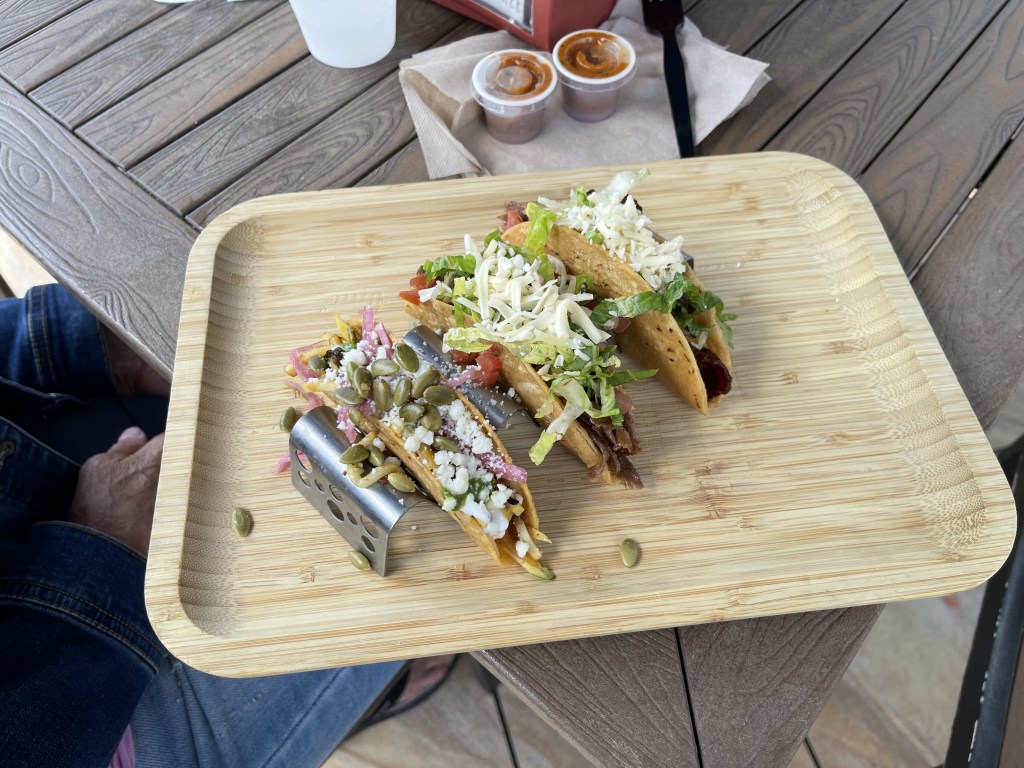 Manchmal möchte man einfach nur einen Taco. VersuchenTürkischer Taco. Es ist ein Ort, an dem die Einheimischen in der 9th Street North essen. Wir haben die Fisch- und Steak-Tacos probiert und sie waren köstlich. Kaufen Sie auch ein T-Shirt. Unterstützen Sie ein lokales Kleinunternehmen!