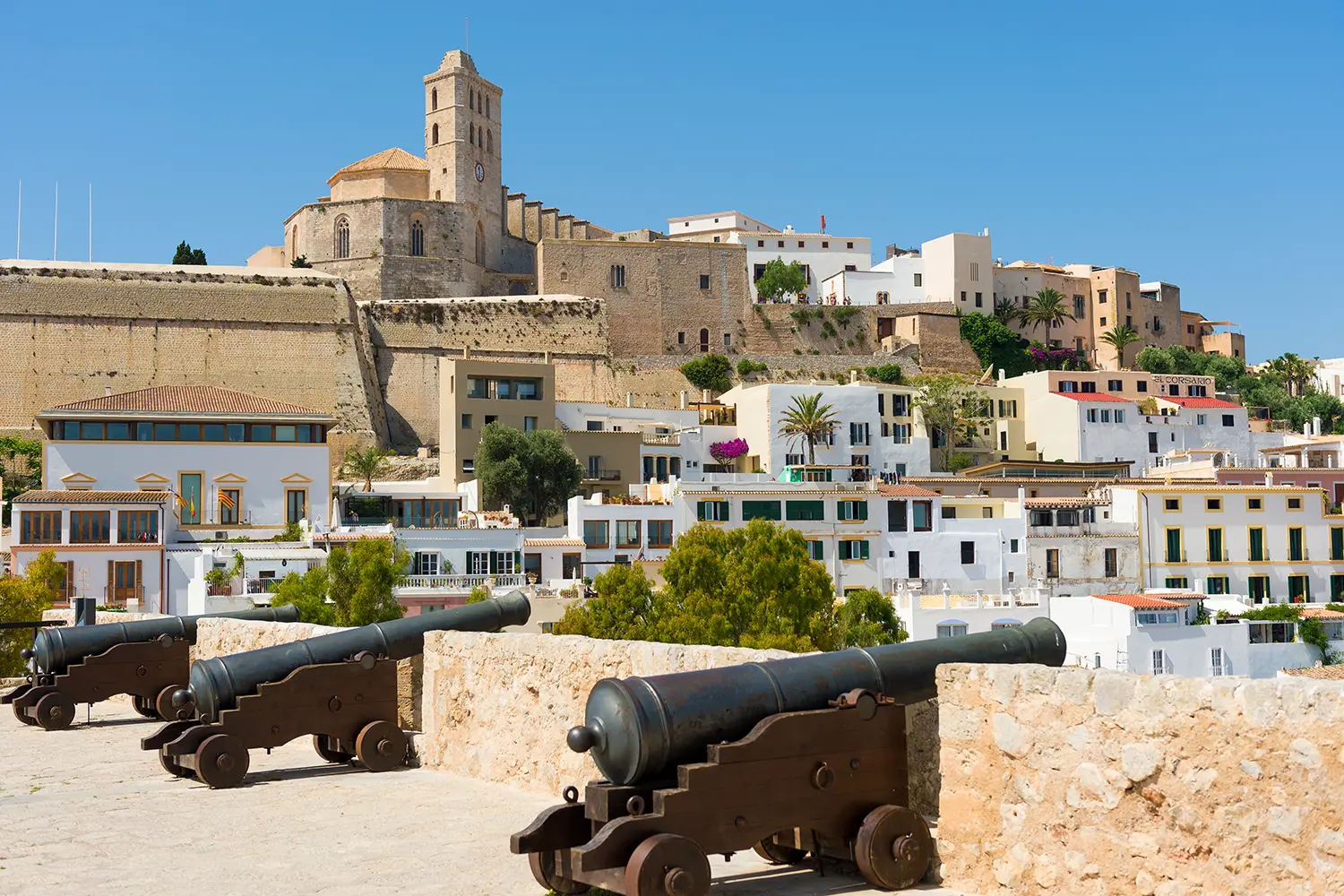 Nachdem Sie einen schönen Blick auf die Stadt genossen haben, können Sie sich gerne auf den Weg zu den Sehenswürdigkeiten im Schlossgelände machen oder die kleinen Gassen auf eigene Faust erkunden. DerArchäologisches Museum von Ibiza und Formenteraist ein fantastisches Museum für diejenigen, die mehr über die Geschichte der Insel erfahren möchten, da Sie mehrere Artefakte und Ausstellungsstücke sehen können, die das Leben von der Vorgeschichte über die Zeit des Hochrömischen Reichs bis hin zum maurisch-mittelalterlichen Zeitalter darstellen. Eine weitere Attraktion innerhalb der Burgmauern ist dieKathedrale von Ibiza(auch bekannt alsKathedrale Santa Maria vom Schnee der Stadt Ibiza), die im 14. Jahrhundert im gotischen Stil erbaut wurde. Es bietet atemberaubende Ausblicke von der Spitze des Burgbergs sowie ein wunderschönes Interieur mit kunstvollen Details und engen Korridoren, die es zu erkunden gilt.