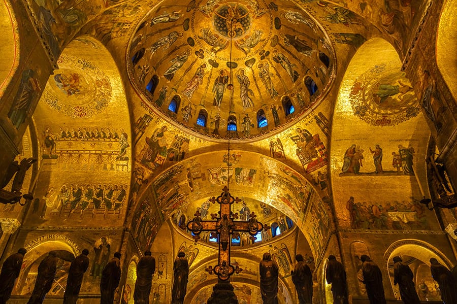 Was St. Marks für Besucher so verlockend macht, ist seine ungewöhnliche Architektur und sein Inneneinrichtung. Während es um das 11. Jahrhundert zum ersten Mal errichtet wurde, trägt die Kirche viele interessante Eigenschaften aus dieser Zeit - am offensichtlichsten die aufwändige byzantinische Architektur, die so aussieht, als ob sie viel weiter östlich gehört, und die Masse von Gold- und Mosaikfliesen, die das Gebäude innen und außen bedecken. Gehen Sie in die Basilika, um zu schätzen, wie viel Gold es gibt und wie detailliert einige der Mosaiken sind.