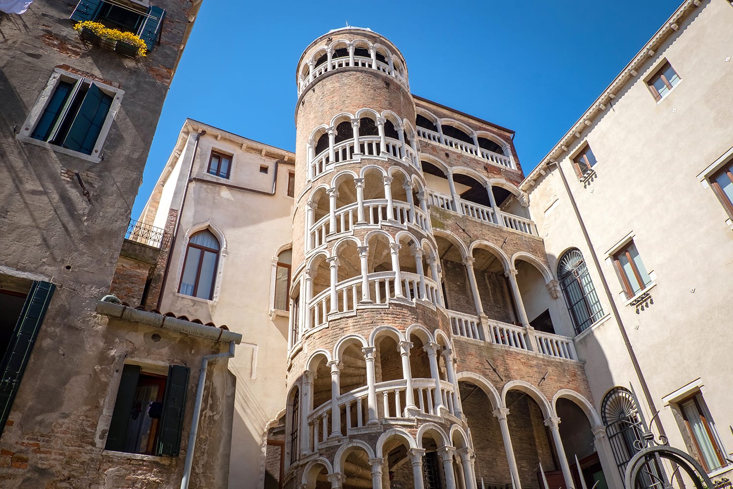 Tief in den Backstreets von San Marco steht eine unterschätzte Attraktion-der Palazzo Contarini del Bovolo, ein Palast aus dem 15. Jahrhundert, der für Gründungsfamilien in Venedig gebaut wurde. Der Anblick, für den die meisten Menschen kommen, ist die atemberaubende Wendeltreppe (Scala), die die Seite des Palastes hinauf rennt. Sie können eine schöne Aussicht über die Dächer der Stadt von der oberen Terrasse genießen, aber die wahre Auslosung ist, diese stationäre Treppe aus der Nähe zu sehen.