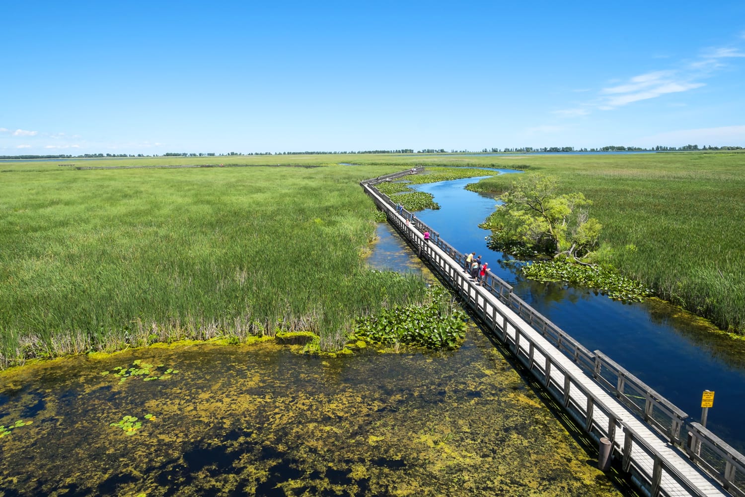 Der Point-Pelee-Nationalpark genießt die Ehre, der südlichste Punkt des kanadischen Festlandes zu sein und liegt am Ufer des Eriesees. Seine Lage in Ontario, nur eine kurze Autofahrt von der amerikanischen Grenze und Detroit entfernt, macht ihn zu einem der am besten zugänglichen Nationalparks Kanadas. Besuchen Sie uns und Sie werden eine schmale Halbinsel voller Sümpfe und Wälder vorfinden, die ein äußerst wichtiges ökologisches Umfeld und Lebensraum für Zugvögel und Monarchfalter darstellt. Aus diesem Grund wurde der Point-Pelee-Nationalpark bereits 1918 als Kanadas erster auf Naturschutz ausgerichteter Nationalpark gegründet. Neben den saisonalen Wildtierveranstaltungen bietet Point Pelee Wander- und Radwege, Sandstrände und Freizeitwassersportarten.
