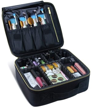 Das leichte und kompakte Chomeiu Travel Makeup Case gilt als der beste Make-up-Organizer für die Reise. Dank verstellbarer, gepolsterter Trennwände können Sie das Innenfach so gestalten, wie es für Sie am besten ist. Dieses Etui verfügt über vier Taschen, in denen Make-up-Pinsel bis zu 8,5 Zoll sowie andere Gegenstände wie Pinzetten Platz finden. Das Oxford-Gewebe ist nicht nur wasserabweisend, sondern das Etui ist auch mit einer Schwammpolsterung versehen, um Schäden durch Stürze und Stöße zu minimieren.