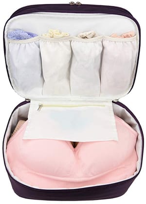 Dieser zweilagige Unterwäsche-Organizer bietet Ihnen den Platz, den Sie für die Unterbringung all Ihrer Must-Have-Unterwäsche benötigen. Die 11,42" × 7,87" × 7,87" große Tasche verfügt über vier Fächer für Höschen und mehrere Reißverschlusstaschen. Die obere Tasche bietet Platz für Dinge wie Schmuck und Make-up-Accessoires. Wenn Sie die Freegrace Travel Organizer-Unterwäschetasche kaufen, müssen Sie sich keine Sorgen mehr machen, durch ein Durcheinander an Kleidung zu wühlen, nur um den einen BH zu finden, nach dem Sie gesucht haben.