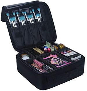 Dieses robuste Make-up-Etui eignet sich hervorragend, egal ob Sie nur wenige Gegenstände haben oder ein professioneller Make-up-Künstler sind. Es ist sowohl wasser- als auch stoßfest und misst 10,3″ x 9″ x 3,6″. Der Relavel Makeup Travel Organizer verfügt über mehrere verstellbare Fächer und bietet Platz für alles, von Make-up und Lipgloss bis hin zu Hautpflegeprodukten und Nagellack. Dank seiner Größe bietet er nicht nur Platz für Kosmetika, auch Toilettenartikel finden darin Platz.