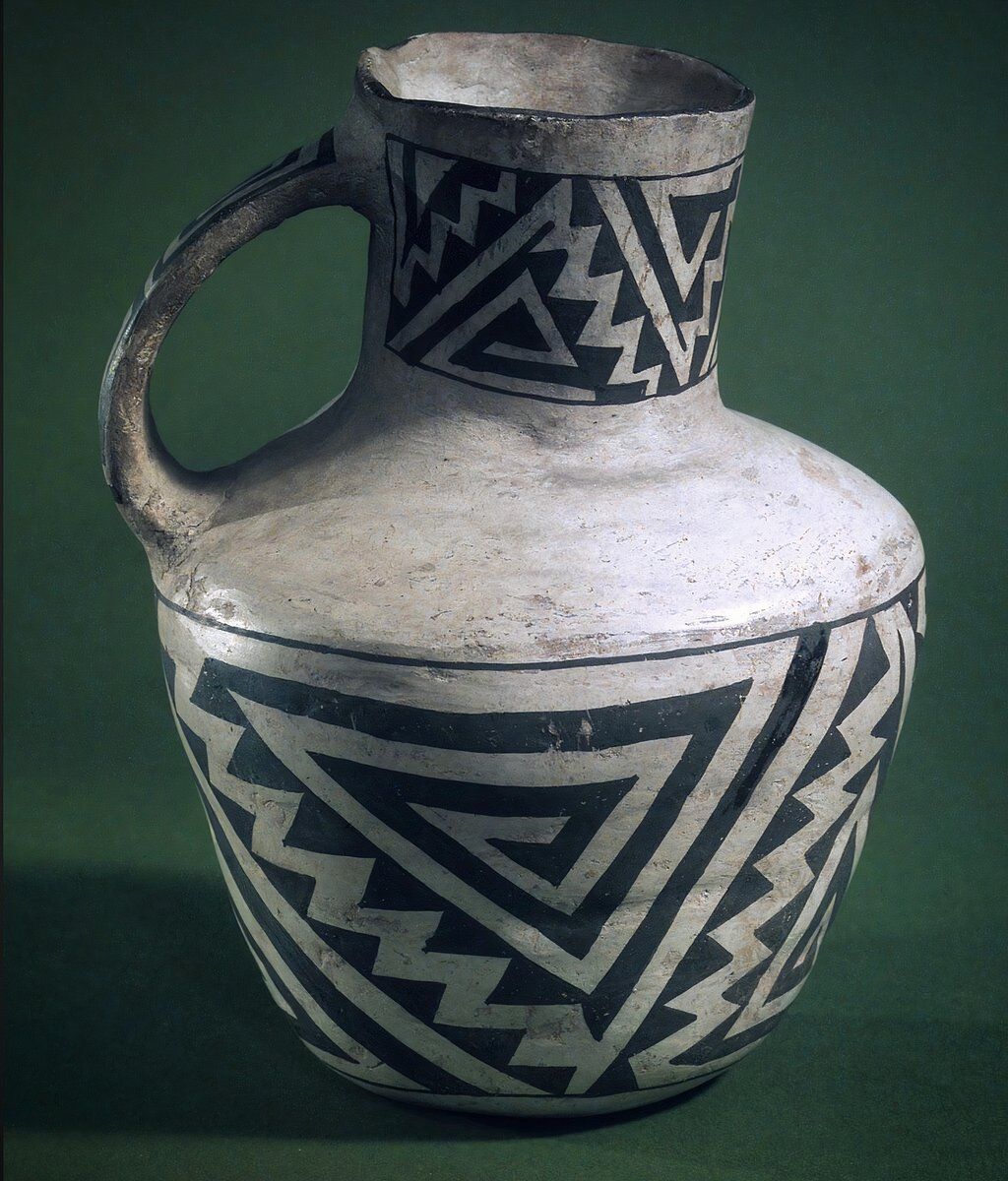 Ancestral Puebloan-Krug mit geometrischen Mustern in Schwarz auf Weiß