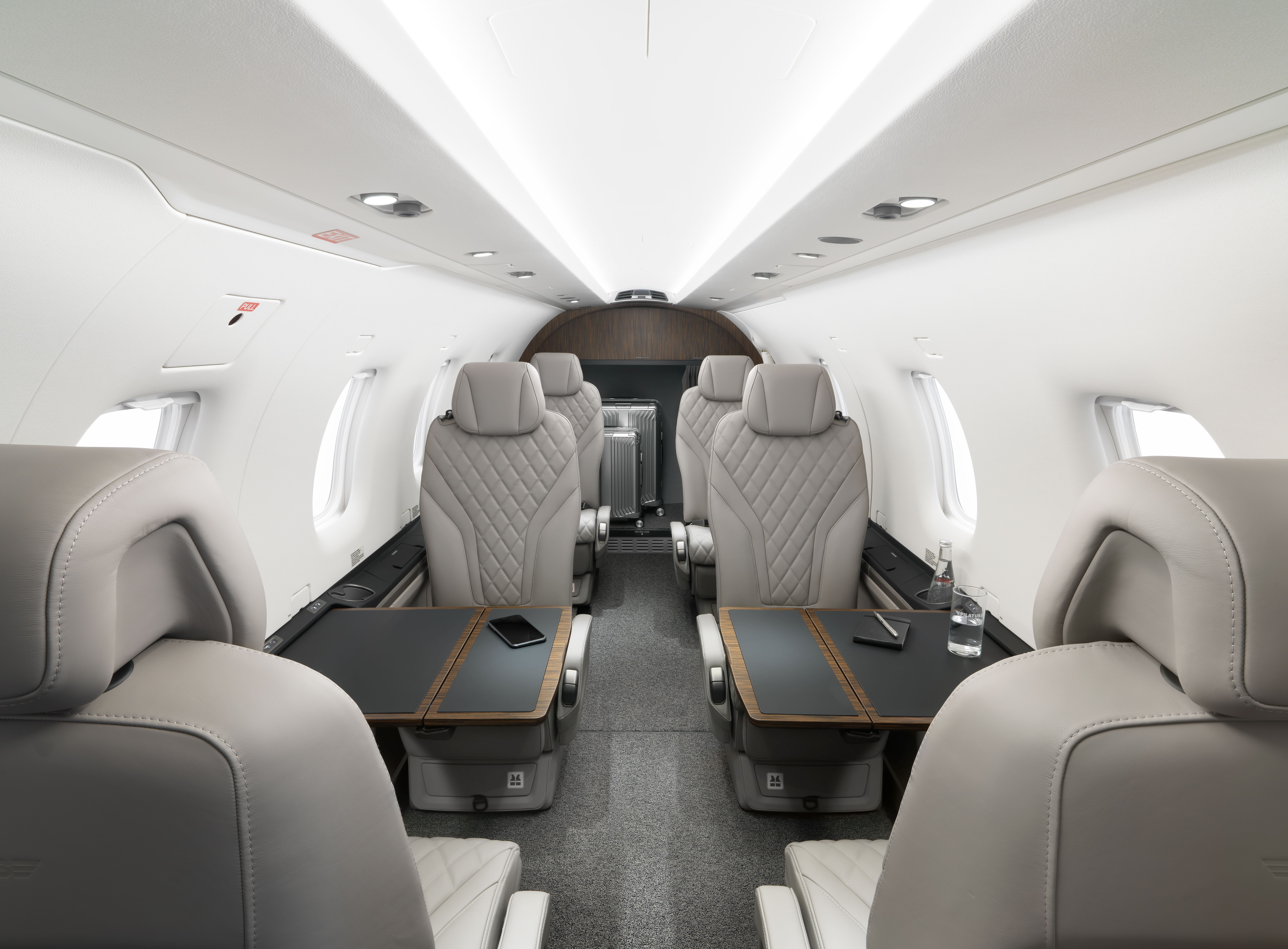 Der Pilatus PC-12 bietet einen Kabinenkomfort, der auf dem US-Luftfahrtmarkt sehr geschätzt wird. Seine geräumige Druckkabine kann für verschiedene Zwecke individuell angepasst werden, von Geschäftsreisen bis hin zu Spezialmissionen wie Medevac und Frachttransport. Die hintere Ladetür erhöht seine Vielseitigkeit und ermöglicht ein einfaches Be- und Entladen von Passagieren und Fracht.