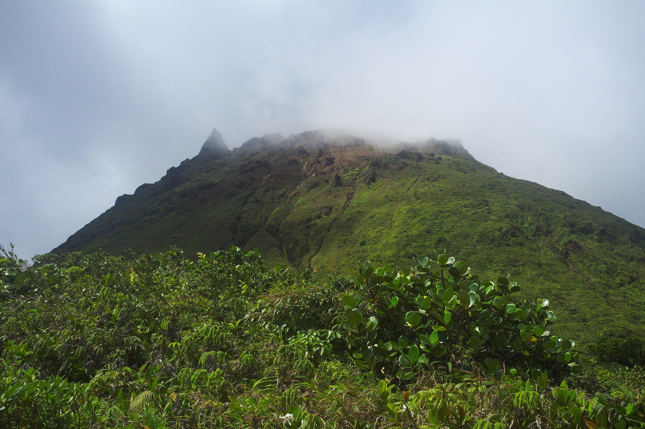 Der 2,9 Meilen lange Weg erklimmt den Berg und schlängelt sich durch eine Mischung aus bewaldetem und felsigem Gelände, wobei er vom Gipfel aus spektakuläre Ausblicke auf die Insel und das Karibische Meer bietet.