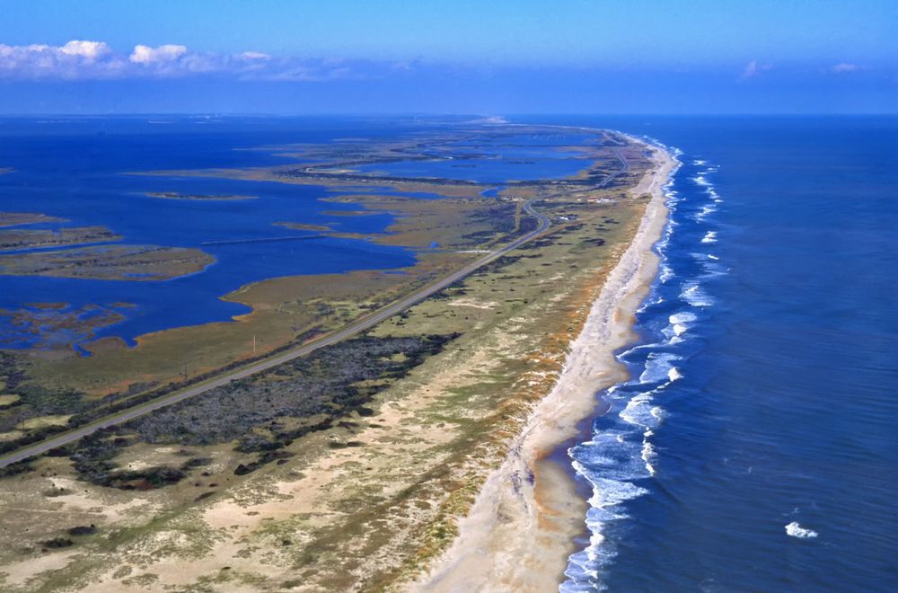 Luftaufnahme des Pea Island National Wildlife Refuge, Outer Banks, North Carolina, NC, USA