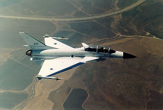 Fighter Jet, ein einheimisches Flugzeug basierend auf dem französischen Mirage 5. Das KFIR wurde zum Symbol für die Fähigkeit Israels, die Verteidigungsplattformen mit leistungsstarken Leistung unabhängig zu entwickeln.