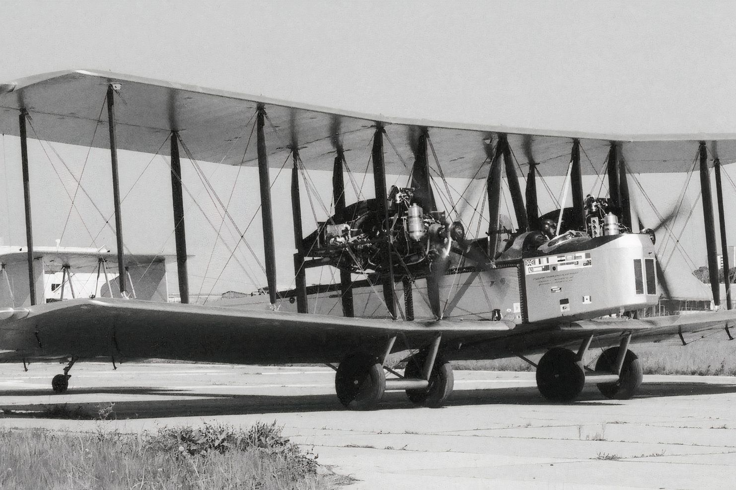 „Mit einer Treibstoffkapazität von 3932 Litern (865 Gallonen) und einer Reisegeschwindigkeit von 144 km/h (90 mph) überquerte es den Atlantischen Ozean in 16 Stunden. Bei seiner Rückkehr wurde es von König Georg V. zum Ritter geschlagen. Ursprünglich als schwerer Bomber für den Angriff auf Deutschland konzipiert und hauptsächlich aus Holz gebaut, das mit einer Stoffschicht überzogen ist, wird das Flugzeug von zwei Rolls-Royce Eagle VIII V-12-Triebwerken angetrieben.“