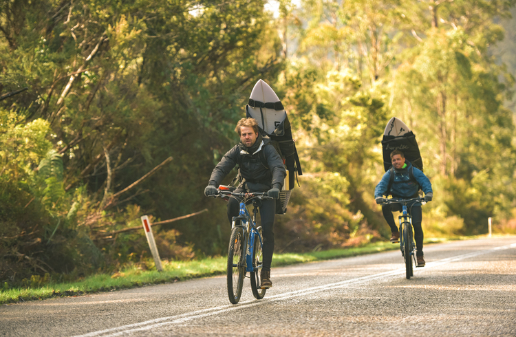 Kim:Bisher keine schlechte Geschichte, Phil. Wir werden dort auf Ange ein paar Minuten innehalten, während wir die Jungs von The Laps treffen, die nach ihrer Ankunft in Tasmanien ihre Reiseroute in den sozialen Medien veröffentlichten und ihnen jeweils ein Fahrrad geschenkt bekamen. Sie ritten mit Surfbrettern auf dem Rücken durch den Staat, durch Wind, Regen, Schnee und Eis. Kein Geld dafür. Wäre nicht einfach und möglicherweise etwas riskant gewesen.