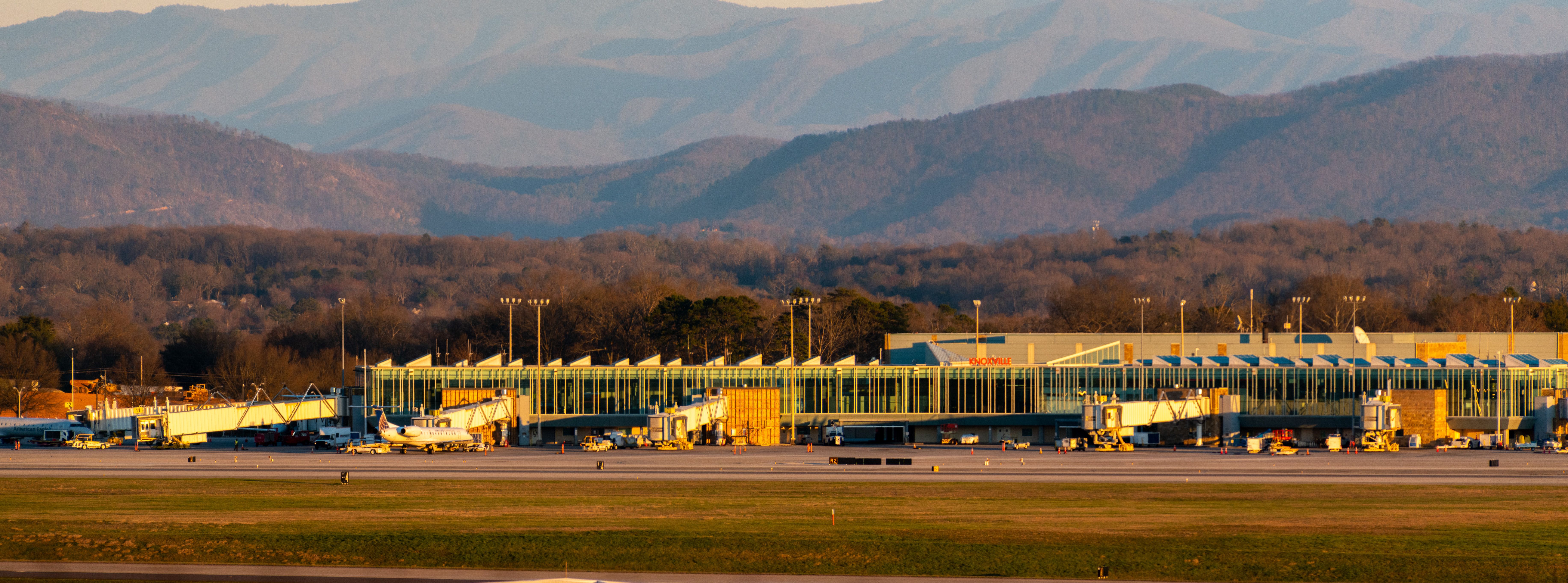 Der McGhee Tyson Airport liegt versteckt in einem breiten Tal und bedient Knoxville, Tennessee. Der Service von American zum Flughafen von Charlotte wird hauptsächlich von durchgeführt