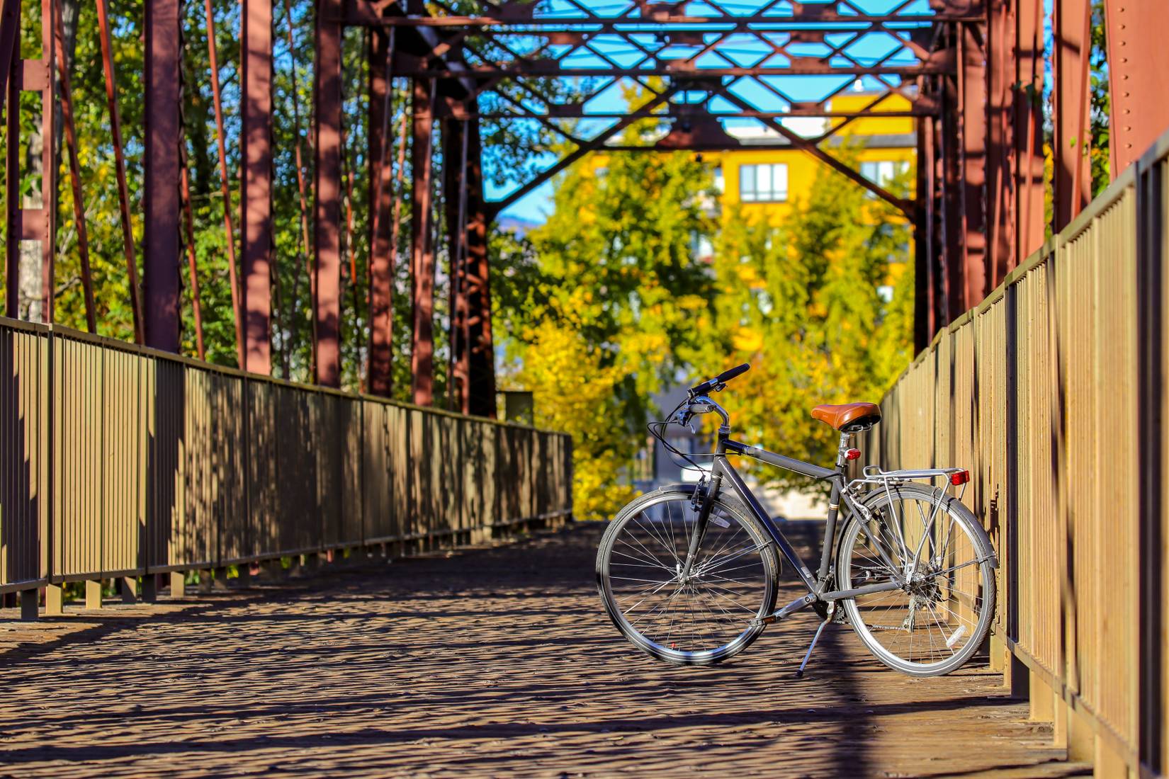 Citybike auf der Greenbelt Bridge in der Innenstadt von Boise, Idaho.