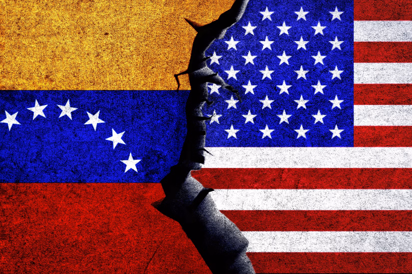 USA Venezuela-Flaggen mit einem Riss dazwischenBildnachweis: Shutterstock