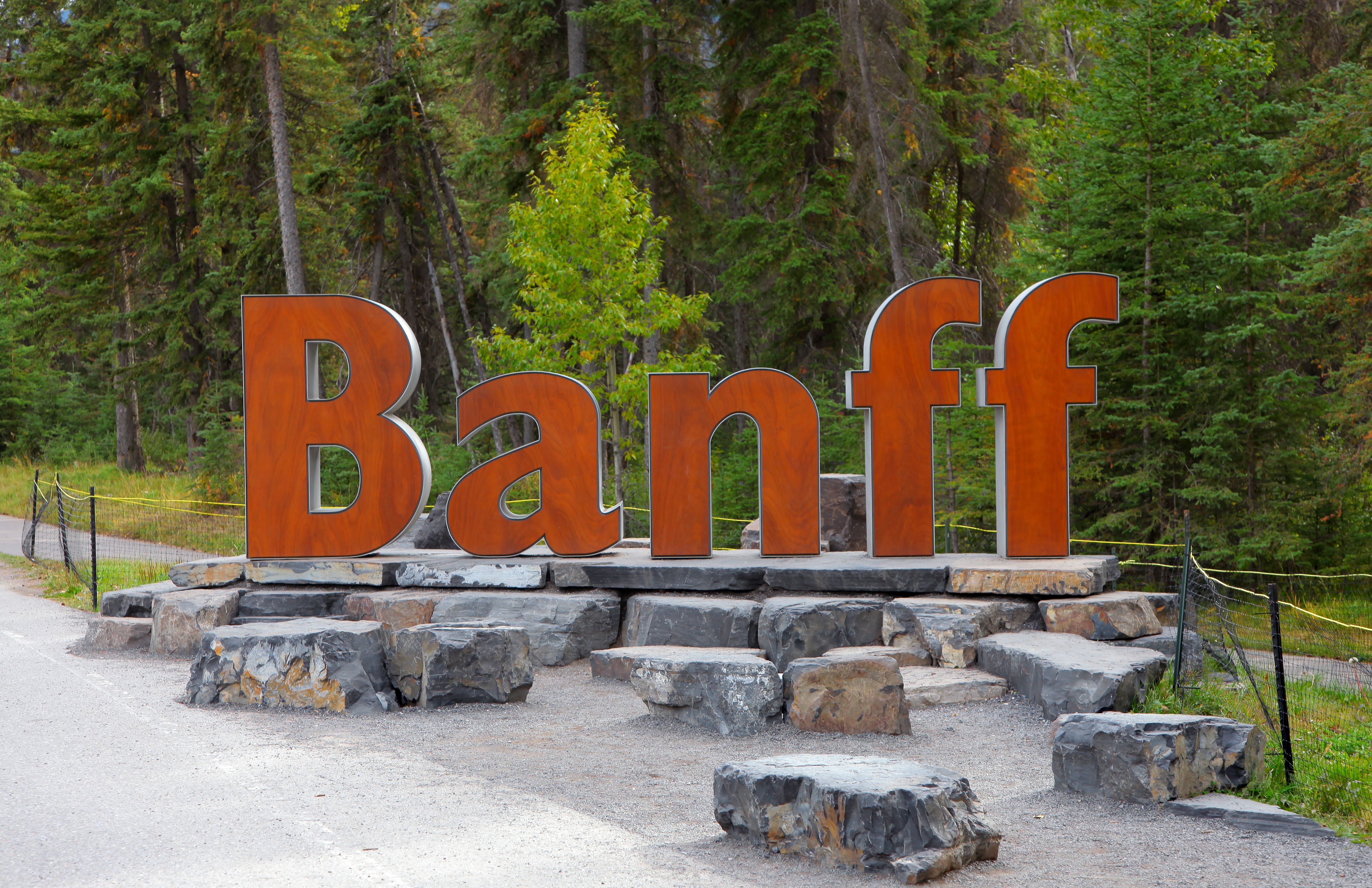 Großes Schild von Banff am Eingang der Stadt Banff in Kanada