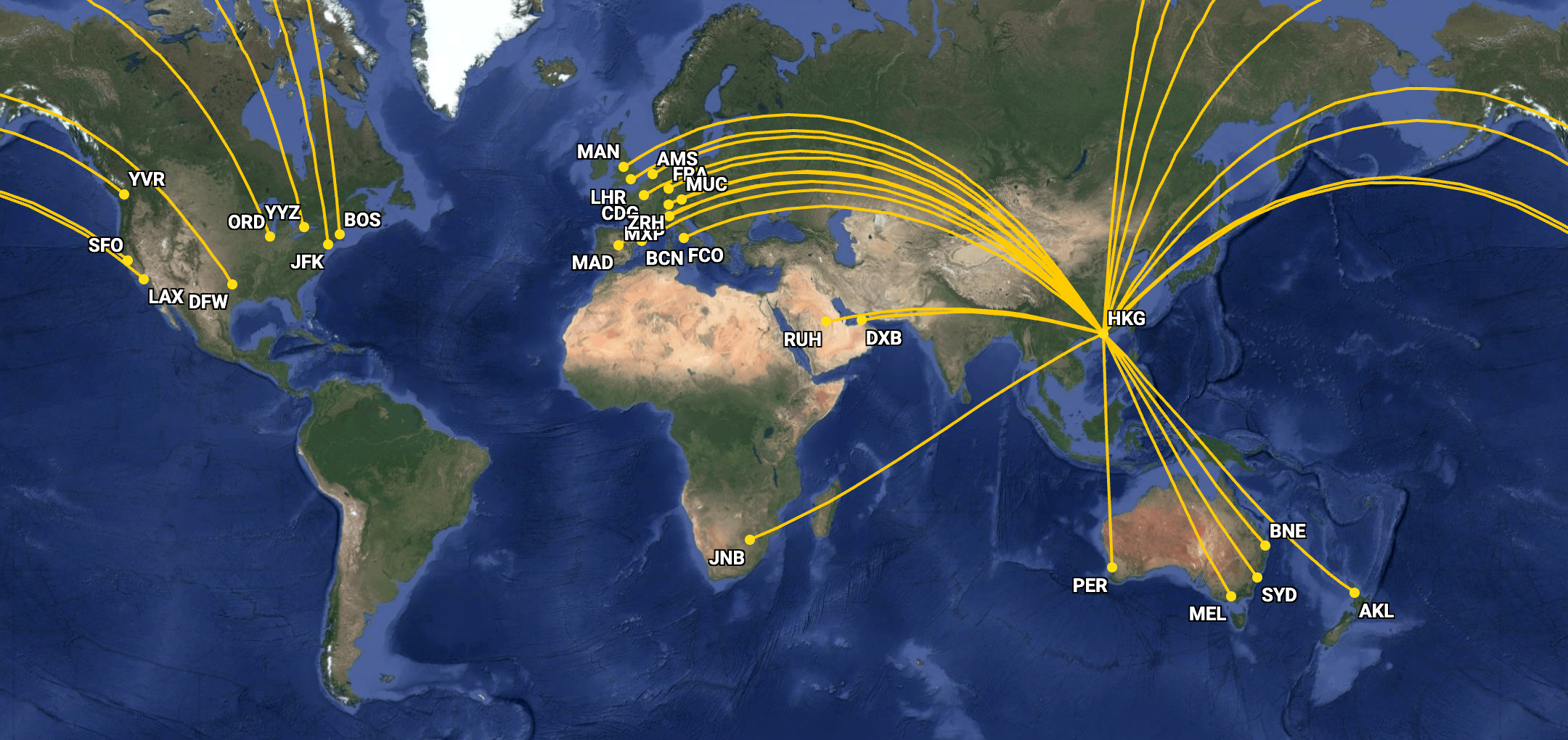Wie markiert vonAeroRoutes, Cathay Pacific hat einen zusätzlichen wöchentlichen Flug zwischen angemeldet