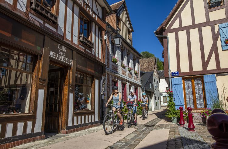 Unterwegs passieren wir alte Kais und Wassermühlen am Ufer der Seine, die im normannischen Stil mit kreuz und quer verlaufenden Holzbalken erbaut wurden. Das Vieux-Moulin von Vernon überspannt den Fluss auf den Überresten einer mittelalterlichen Brücke.