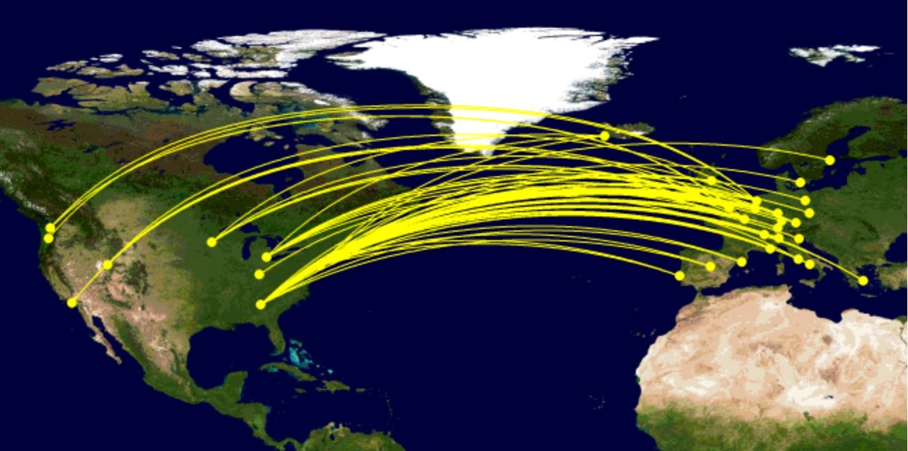 Sie werden von New York JFK (26 Strecken), Atlanta (16), Boston (acht), Detroit (sieben), Minneapolis (fünf), Salt Lake City (drei), Seattle (drei), Los Angeles (zwei), Cincinnati (einer) und Portland (One) operieren. Während die Karte unten schwer zu lesen ist, zeigt sie alle 72 Routen an.