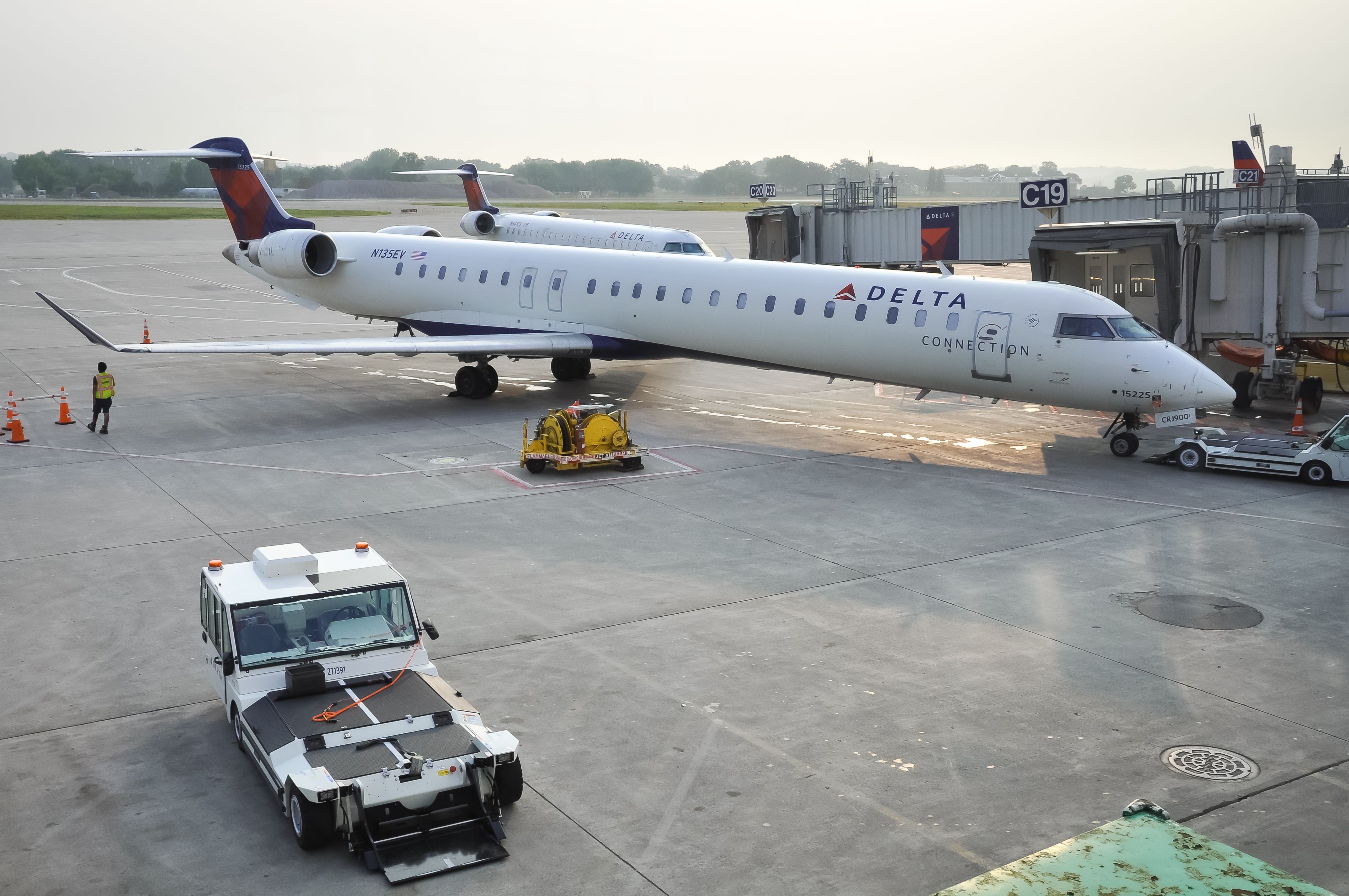 - DL4918, Abfahrt von LaGuardia um 19:59 Uhr, Ankunft in Lexington um 21:49 Uhr. Die Blockzeit beträgt eine Stunde und 50 Minuten.