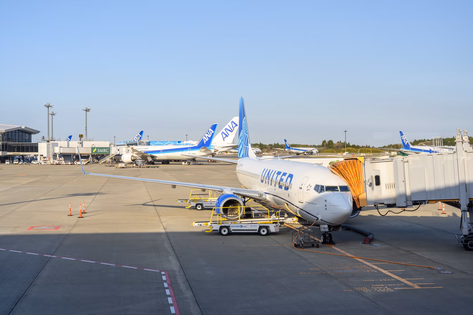 Flugzeuge der United Airlines werden gewartet und am Passagiergate geparkt. Bildnachweis: Shutterstock