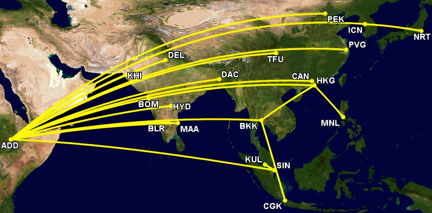 Aber beachten Sie das16:10Abfahrtszeit von Addis Abeba. Dies ist Teil der wachsenden dritten Flugwelle Äthiopiens, die dazu beitragen wird, die Wettbewerbsfähigkeit, den Marktanteil und die Flugzeugauslastung zu steigern und gleichzeitig für weniger Staus in hektischen Zeiten zu sorgen.