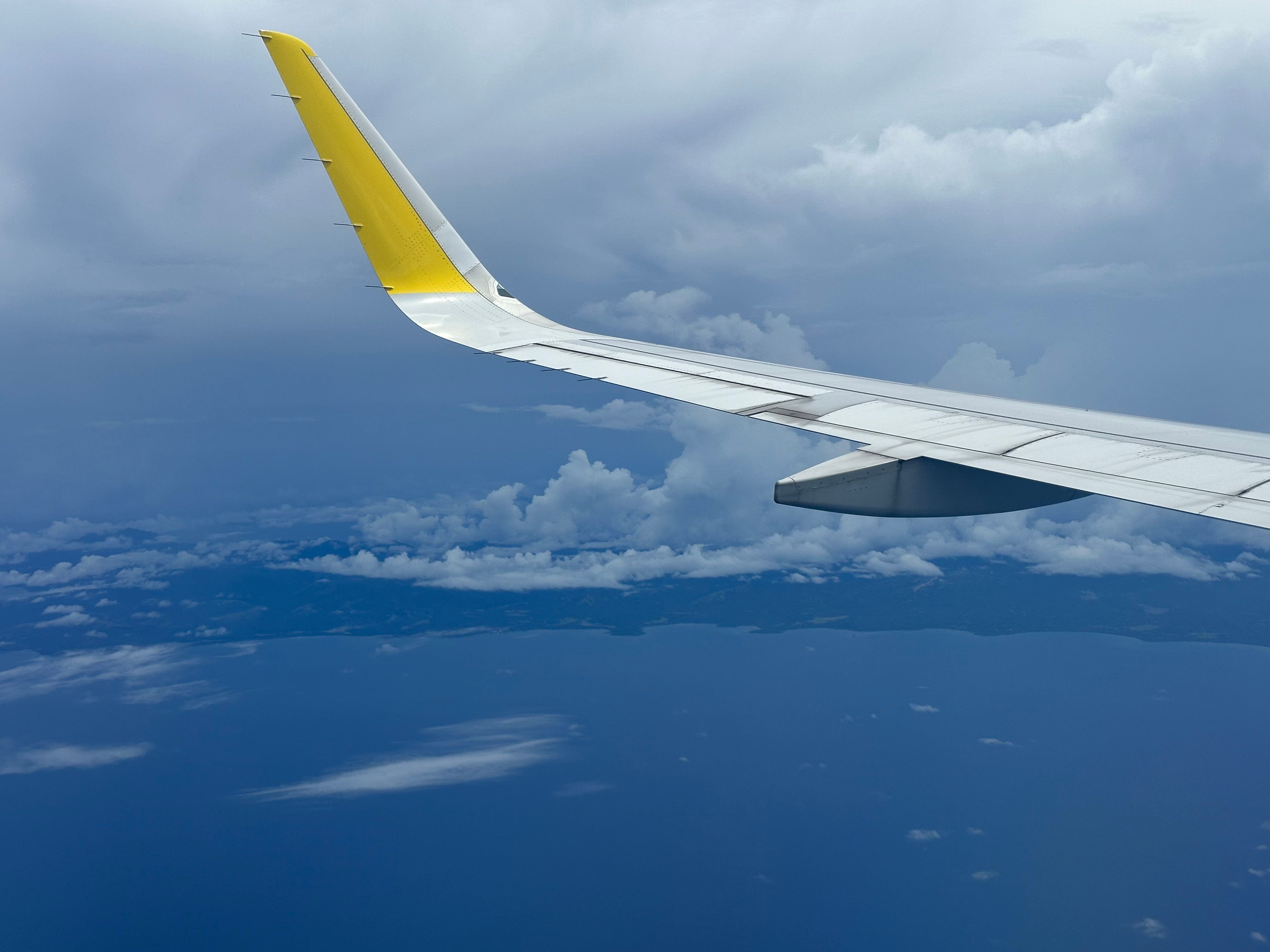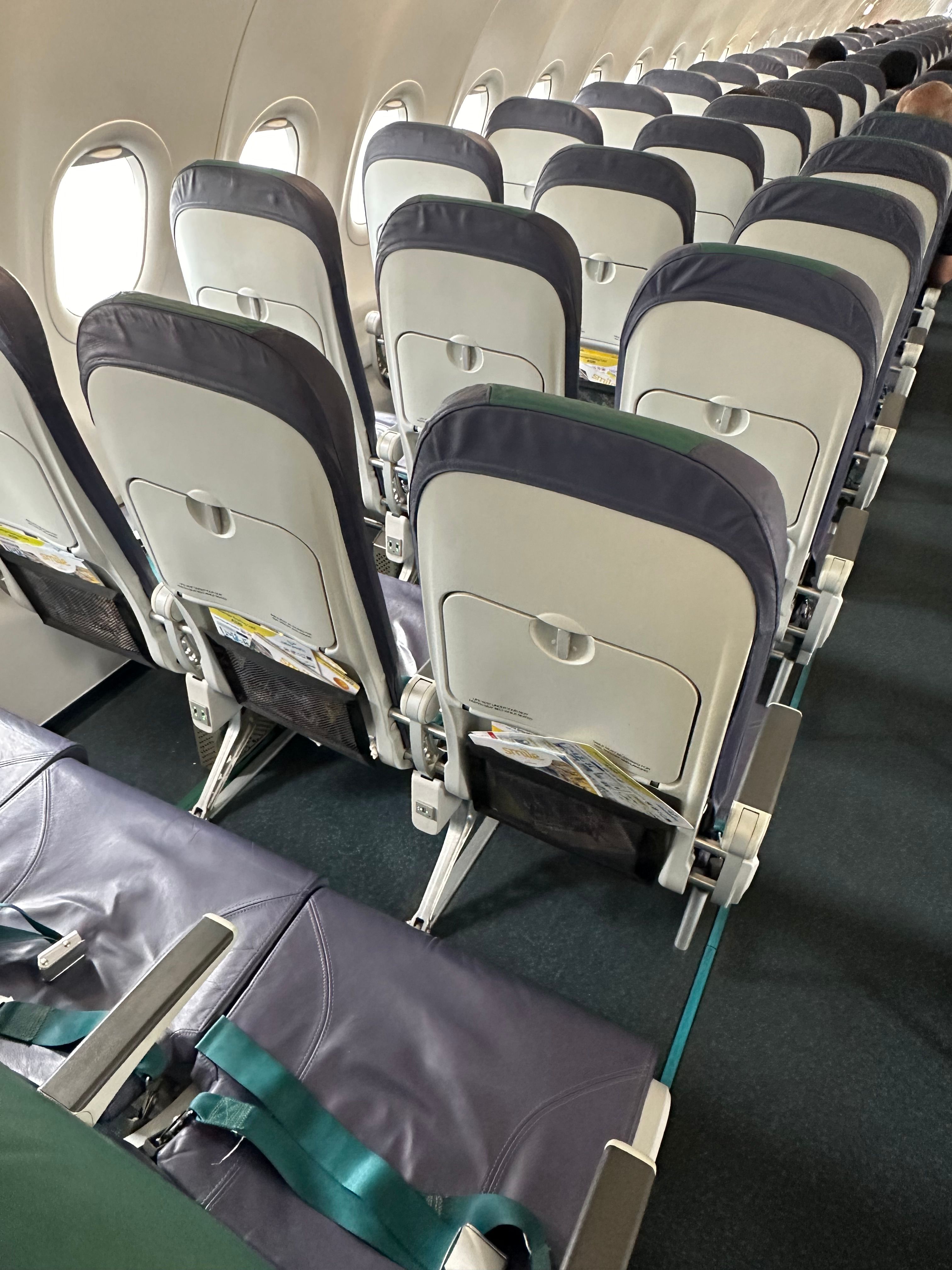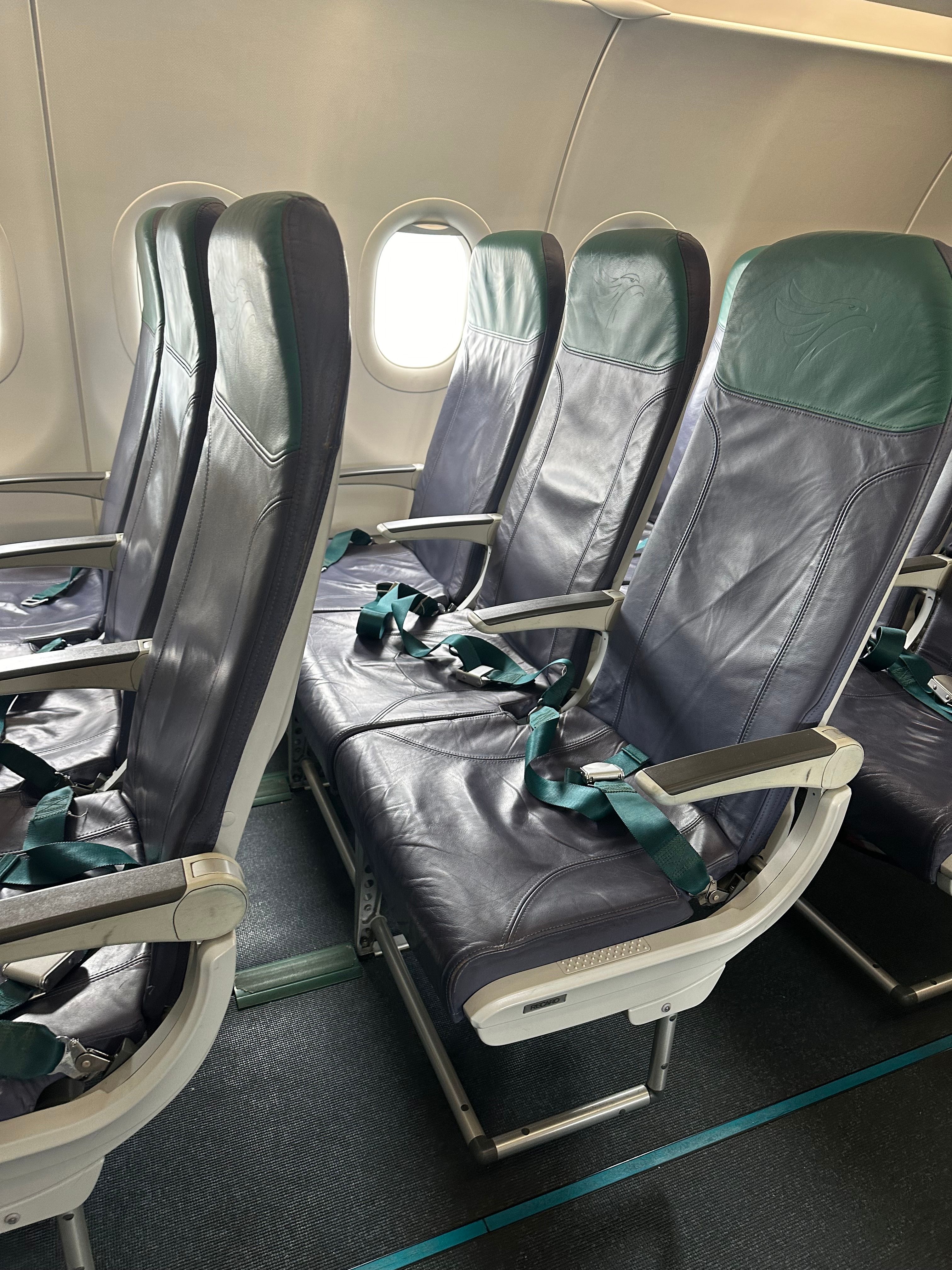 Das Einsteigen in den Airbus A320neo erfolgte über die Vordertür über eine Rampe, und da es nur begrenzt Handgepäckstücke gab, war ich überrascht, wie reibungslos es verlief, ganz im Gegensatz zur üblichen Suche nach Platz in einem Gepäckfach über dem Kopf. Das Flugzeug war wahrscheinlich zu etwa 70 % ausgelastet, sodass mein Sitzplatz bei 29 °C nach dem Start zu 29 A, B und C wurde, während der Jet schnell abflugbereit und auf dem Weg war.