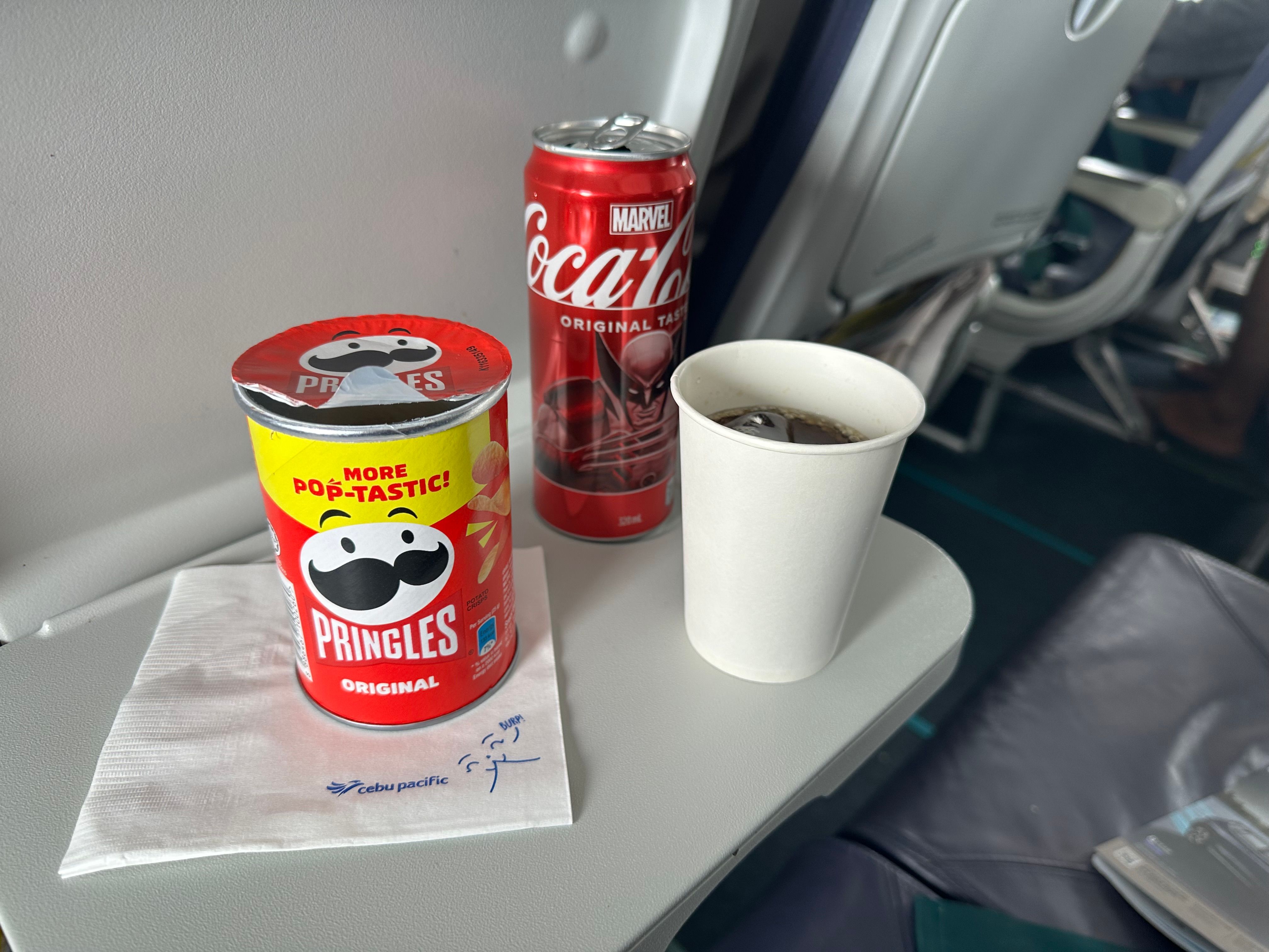 Das Sicherheitsgurt-Schild wurde erst einige Minuten vor dem Ende des Abstiegs ausgeschaltet, aber dasKabinenpersonalist in Aktion getreten, um den Leuten die Snacks und Getränke zu besorgen, die sie vorbestellt hatten, obwohl die Zeit dafür so kurz war. Die Fluggesellschaft erleichtert dies mit einem gut geplanten Menü und der Verwendung gebündelter Optionen, bei denen es sich für mich um ein Getränk und ein paar Pringles für nur PHP 170 ($ 3) handelte.