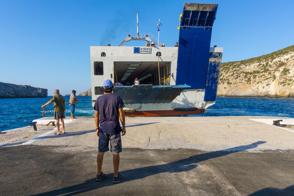 Abfahrt der Fähre vom Hafen von Antikythera in Griechenland