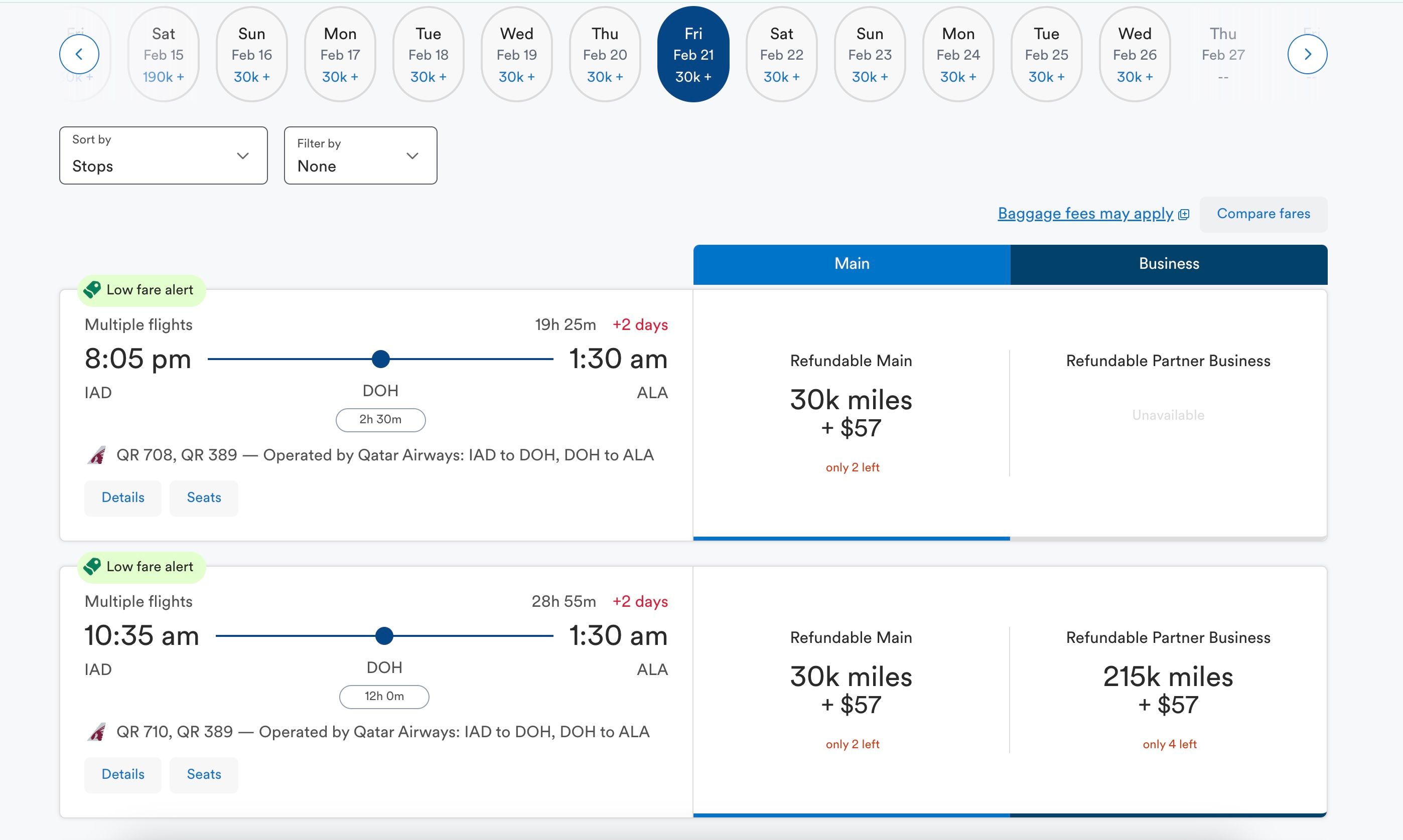 (ALA) in Kasachstan sind ebenfalls in der Vereinbarung enthalten. Die einzige oneworld-Fluggesellschaft, die im nächsten Frühjahr Almaty anfliegt, ist Qatar Airways, basierend auf Daten vonKerze, und alle verfügbaren Einlösungsoptionen, die in der Studie von Simple Flying gefunden wurden, beinhalten einen Zwischenstopp in Doha.