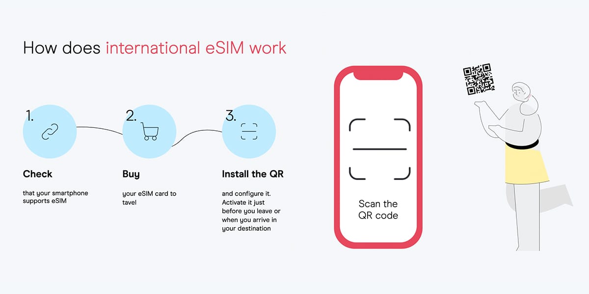 Mit Holafly ist es nicht nötig, in Ihrem Zielland in ein Geschäft zu gehen oder für den Versand einer SIM-Karte zu bezahlen. Wählen Sie einfach online einen Plan aus und scannen Sie den an Ihre E-Mail gesendeten QR-Code, um Ihre eSIM zu aktivieren.