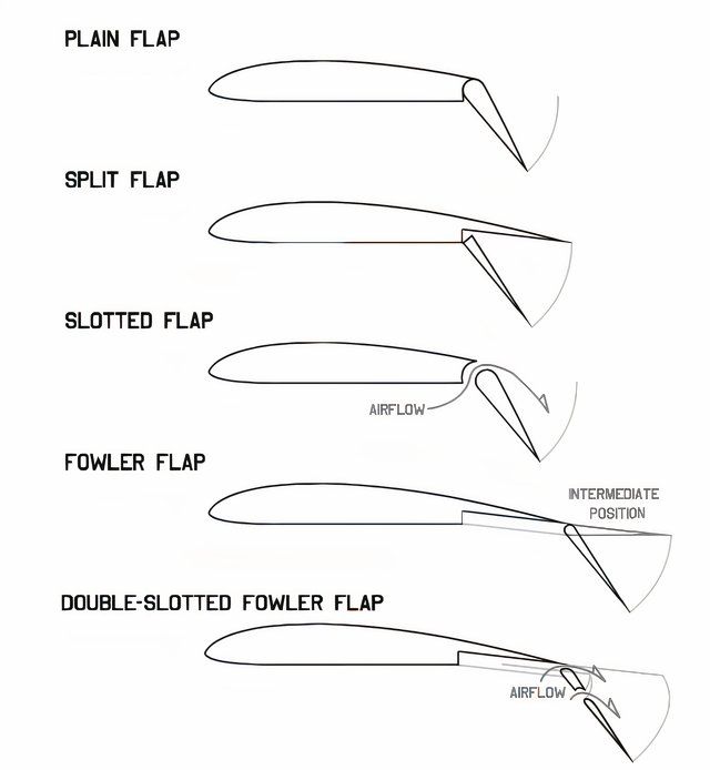 Wie bereits erwähnt, gibt es zwei Kategorien von Klappen: Vorderkanten- und Hinterkantenklappen.Das sind die verschiedenen Typen: