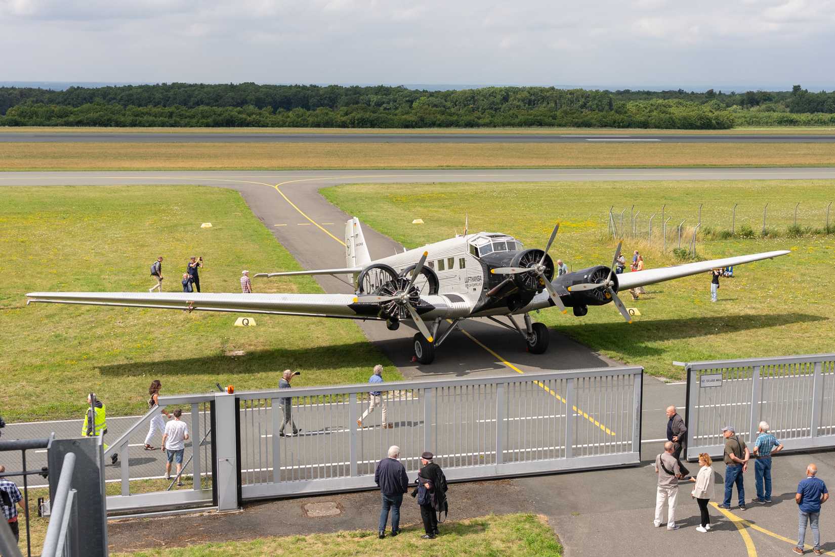 Lufthansa Junkers Ju 52 kommt im Vorfeld der Jubiläumsausstellung in Frankfurt an