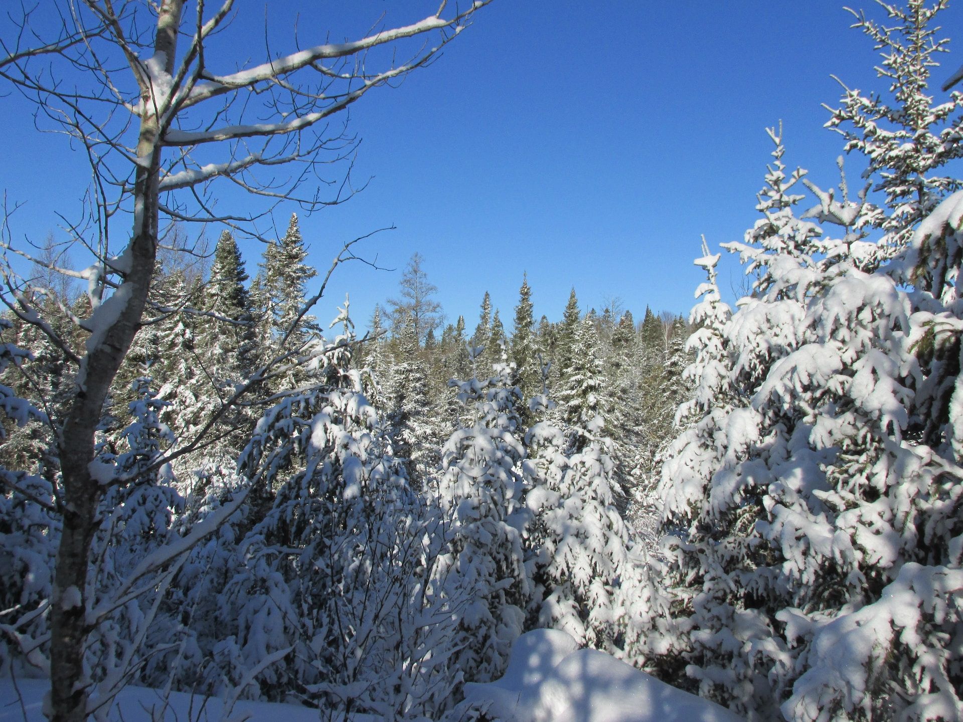 Mit Schnee bedeckte Bäume im Voyageurs-Nationalpark, Minnesota