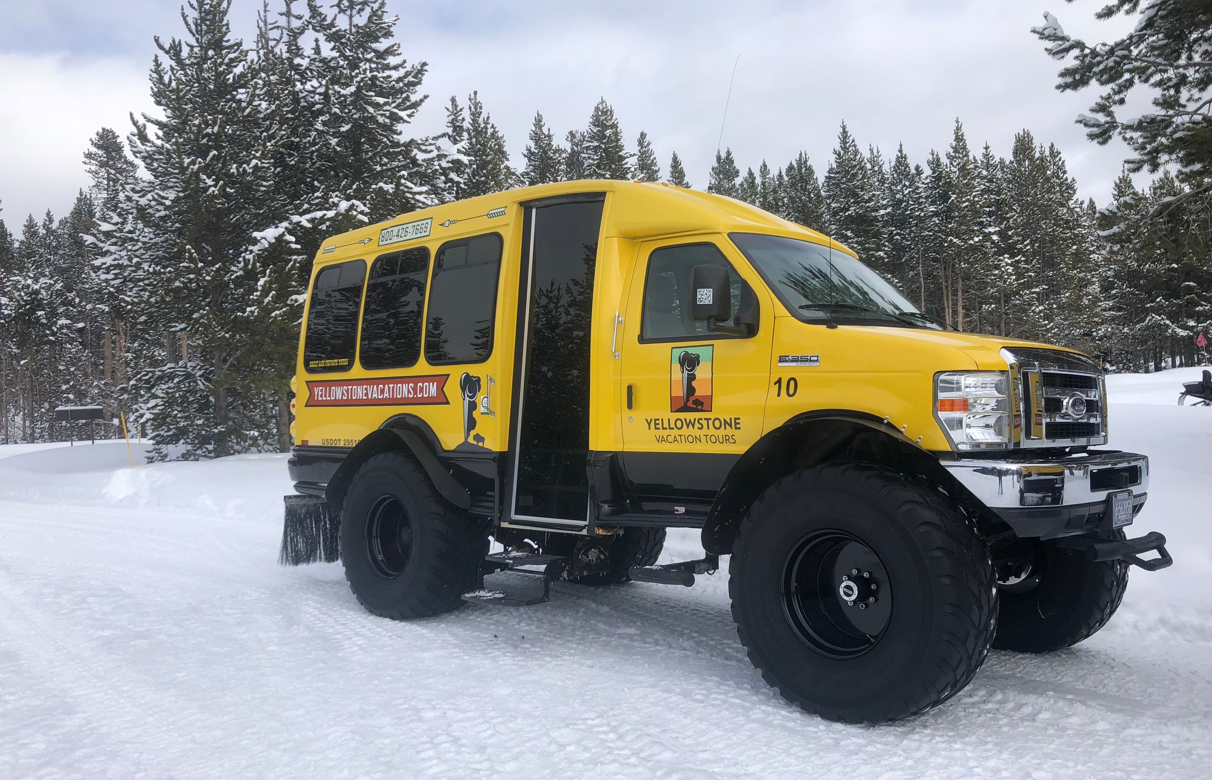 Ein Schnee -Trainer im West Yellowstone National Park im Winter