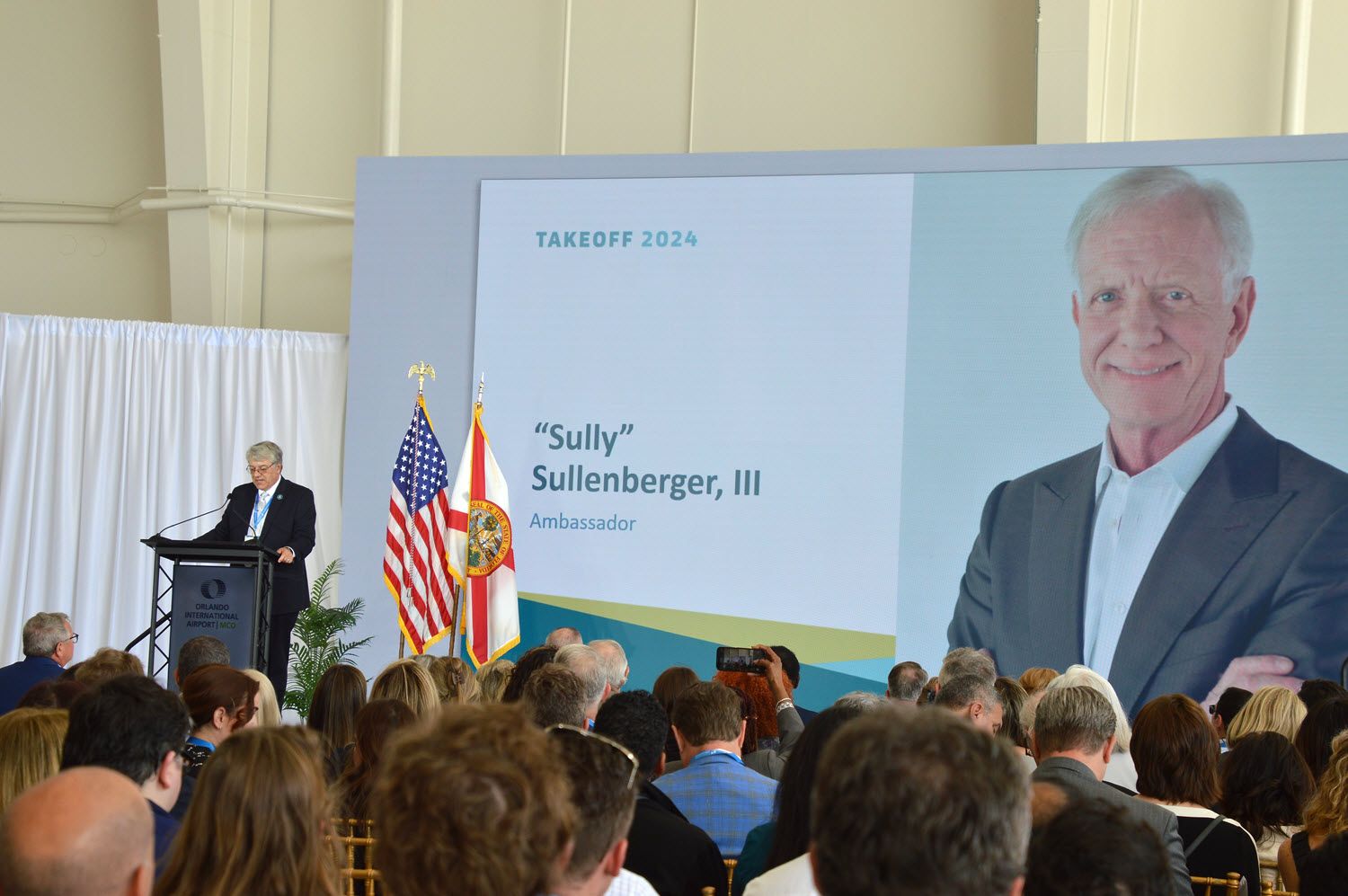 Der Hauptredner von TAKEOFF 2024 war Kapitän „Sully“ Sullenberger, den viele als den Piloten kennen, der 2009 einen Airbus A320 der US Airways sicher auf dem Hudson River landete, nachdem ein Vogelschlag zum Ausfall eines Doppeltriebwerks geführt hatte.