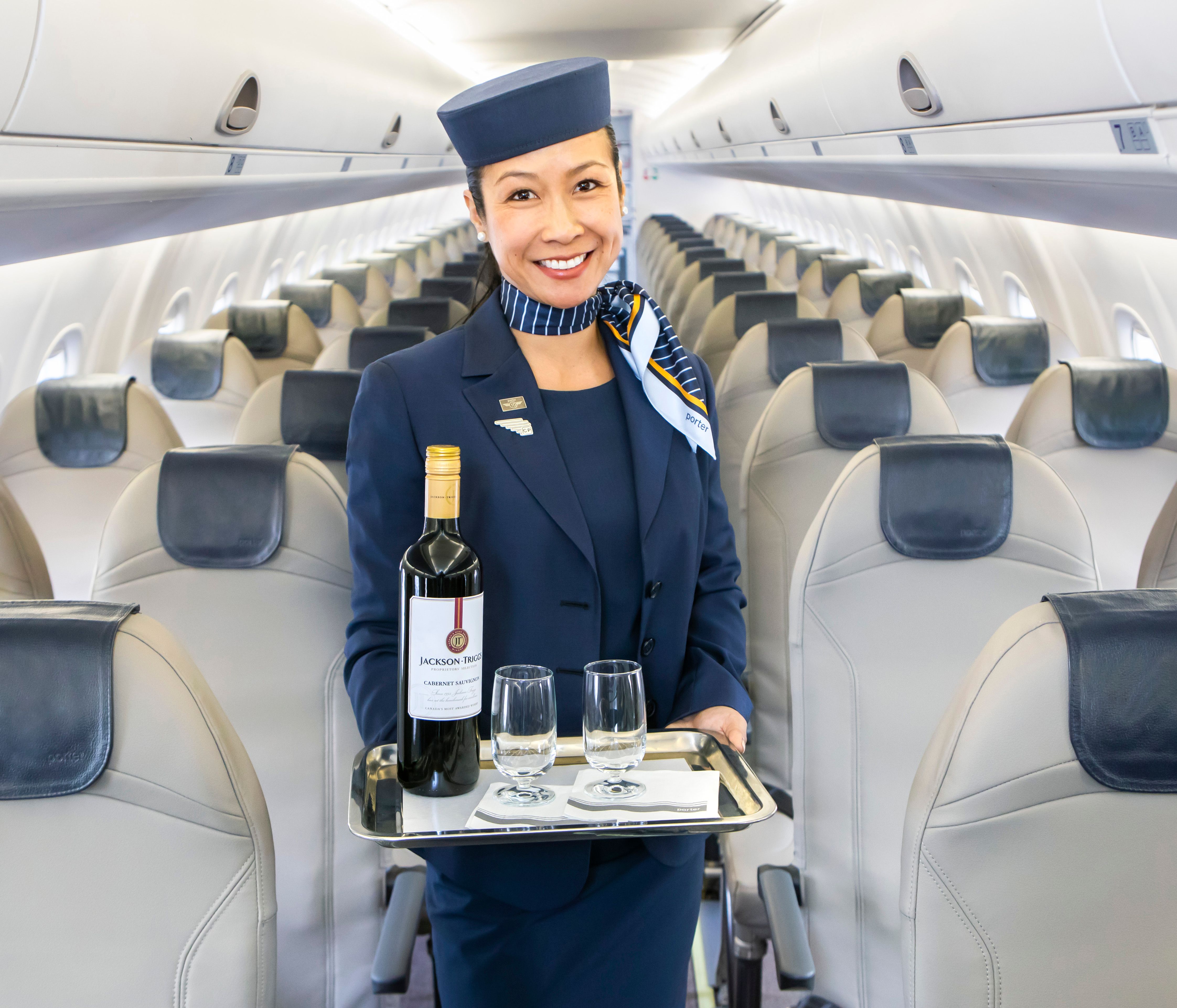 Passagiere genießen außerdem kostenloses Bier und Wein in Gläsern, eine Auswahl an kostenlosen Premium-Snacks und hochwertige frische Mahlzeiten. Die moderne Flotte der E195-E2 hat ein Durchschnittsalter von knapp 10 Jahren1,1 Jahre, was erstaunlich ist, wenn man bedenkt, dass 42 Flugzeuge in Betrieb sind und alle Passagiere in diesen Flugzeugen auf kostenloses WLAN-Streaming zugreifen können.