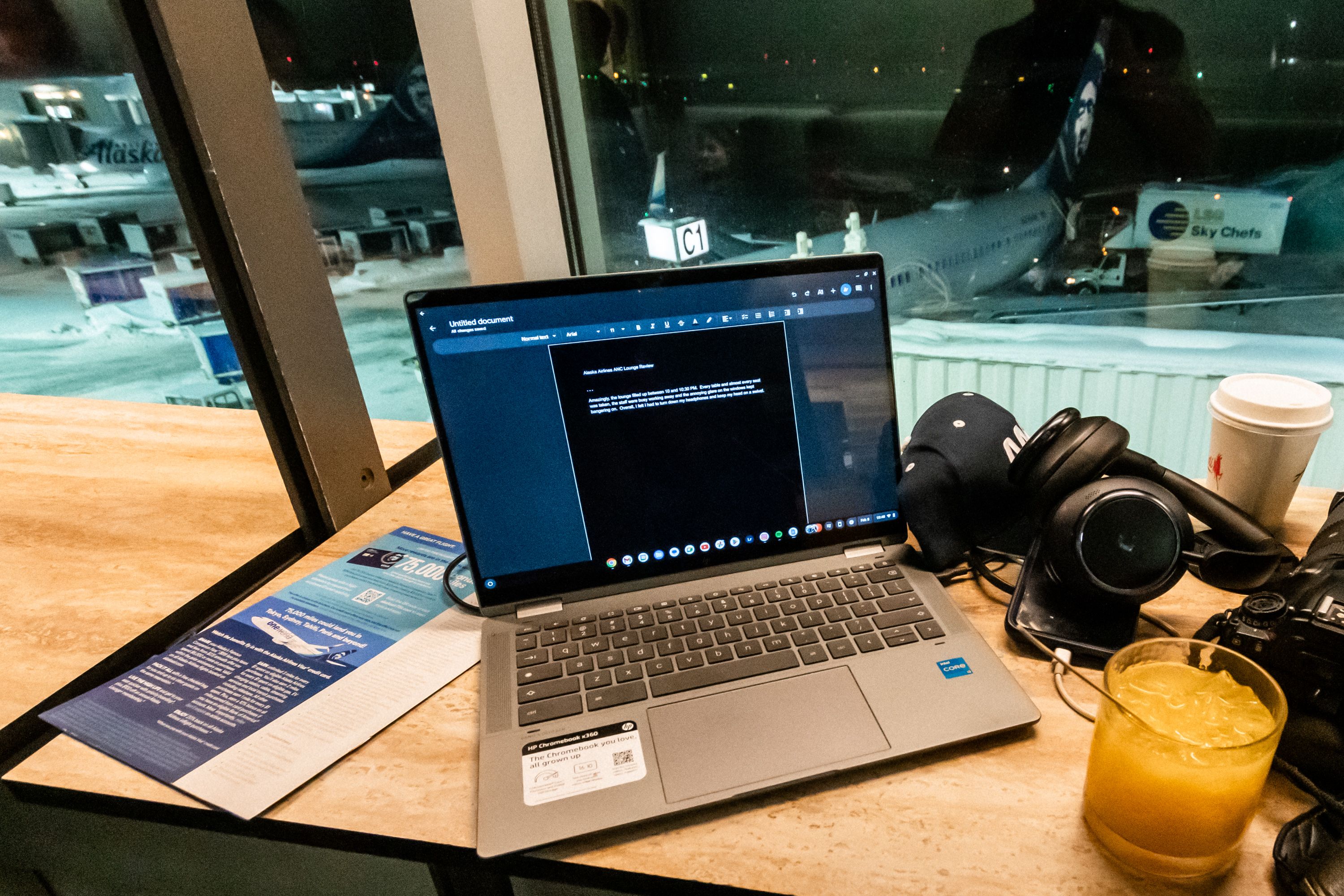 Letztendlich habe ich es sehr geschätzt, einen Arbeitsplatz zu haben, an dem ich Flugzeuge beobachten und arbeiten kann. Obwohl nicht jeder Lounge-Gast die Lounge als Arbeitsplatz nutzte, war die Möglichkeit, Bewertungsnotizen mit einer solchen Aussicht und Sicherheit zu verfassen, dass man das Chromebook und die Kameratasche verlassen und sich um andere Bedürfnisse wie Essen und Flüssigkeitszufuhr kümmern konnte, von unschätzbarem Wert.