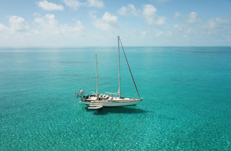 Brian: Und jetzt befinden wir uns auf den Bahamas tatsächlich in einer ziemlich prekären Situation. Dies ist derzeit unser 54. Tag, seit wir in einer Stadt, einem Hafen oder irgendetwas anderem waren. Wir waren gerade auf See und haben vor diesen unbewohnten Inseln hier draußen vor Anker gelegen. Und es ist wahrscheinlich das Seltsamste, was ich je beim Segeln gesehen habe, und ich habe viele seltsame Dinge gesehen.