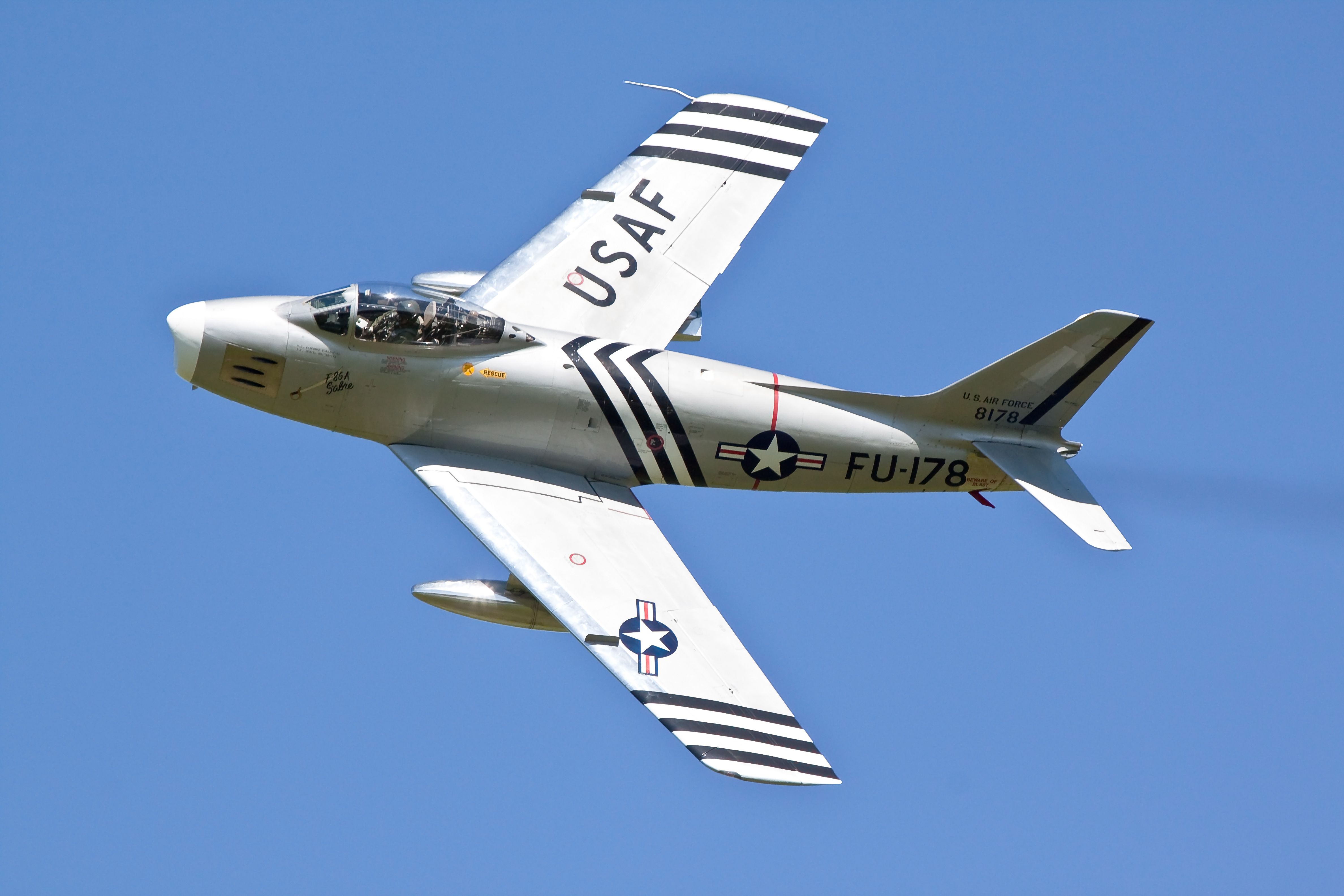 Die North American F-86 Sabre ist ein transsonisches Jagdflugzeug, das von North American Aviation entworfen und entwickelt wurde. Das Flugzeug absolvierte seinen Erstflug im Oktober 1947 und wurde 1949 bei der US-Luftwaffe in Dienst gestellt. Es ist das erste in den USA stationierte Pfeilflügel-Düsenjagdflugzeug, das der von der Sowjetunion gebauten MiG-15 in Hochgeschwindigkeits-Luftkämpfen während des Koreakrieges entgegentrat. Die beiden Jets lieferten sich in mehreren großen Gefechten der Geschichte ein Kopf-an-Kopf-Rennen.